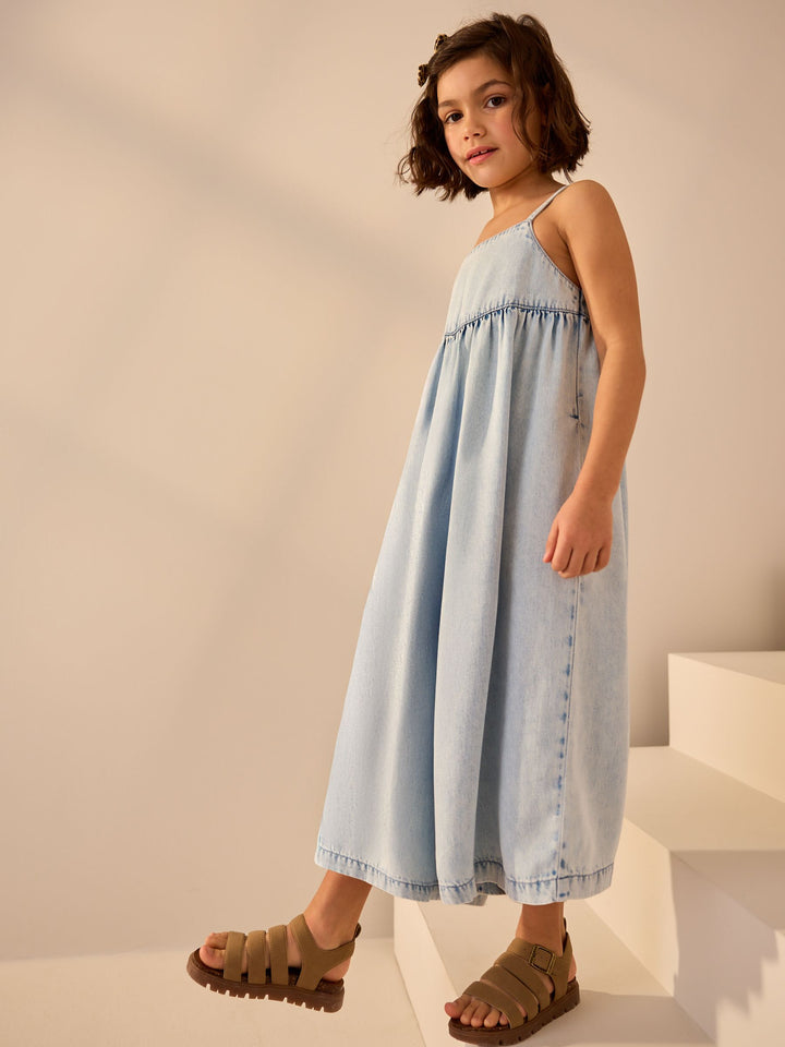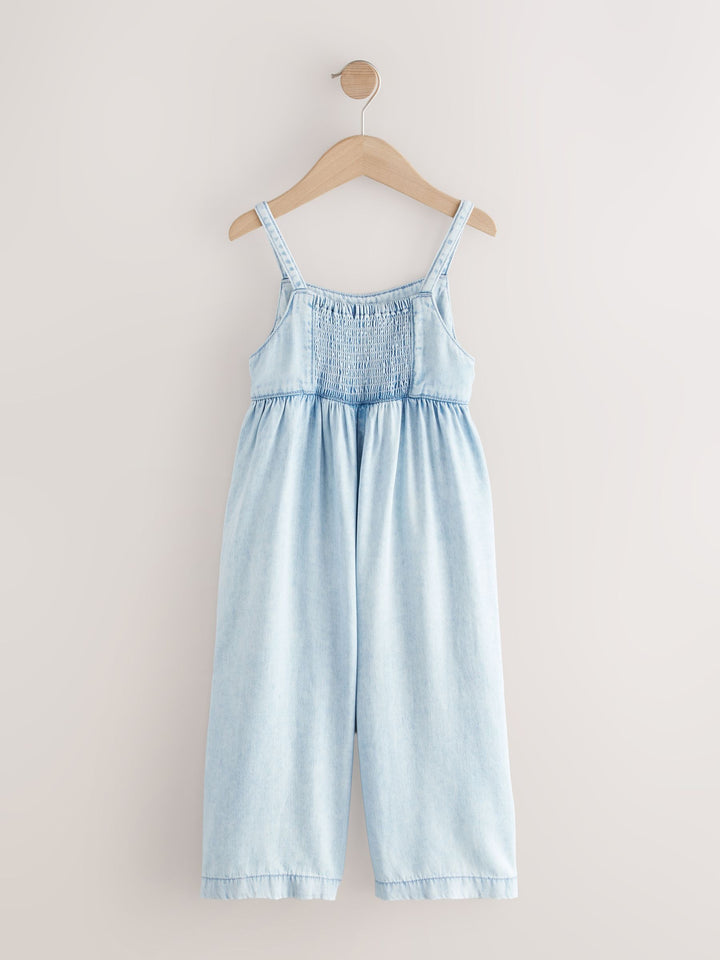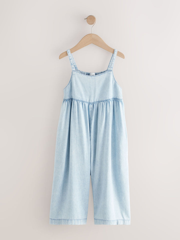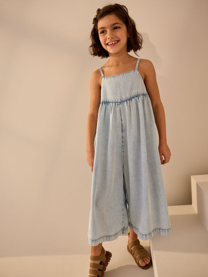 This light wash denim pull-on playsuit is an easy option for spring, summer and packing for a holiday, featuring wide legs, a sleeveless design and a breathable cotton fabric with a textured finish. Wide leg 100% cotton Textured finish Shoulder straps 100% TENCEL™ lyocell. Country of Origin: Bangladesh