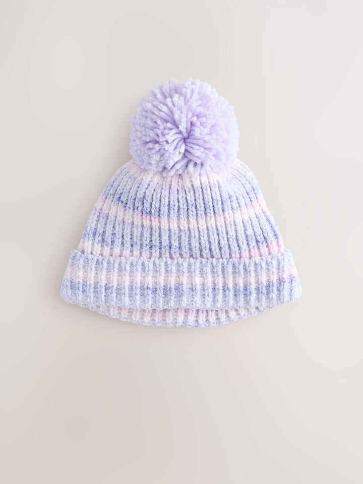 Lilac Tonal Baby Chenille Knitted Pom Hat (0mths-2yrs)