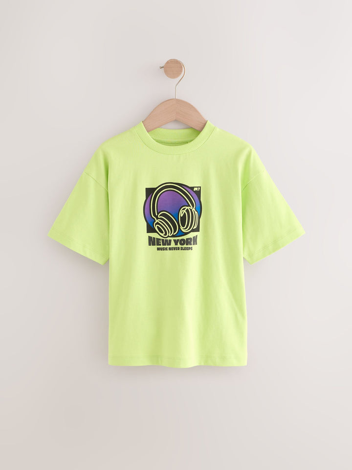 Lime Green Relaxed Fit Short Sleeve Graphic Print T-Shirt (3-16yrs)