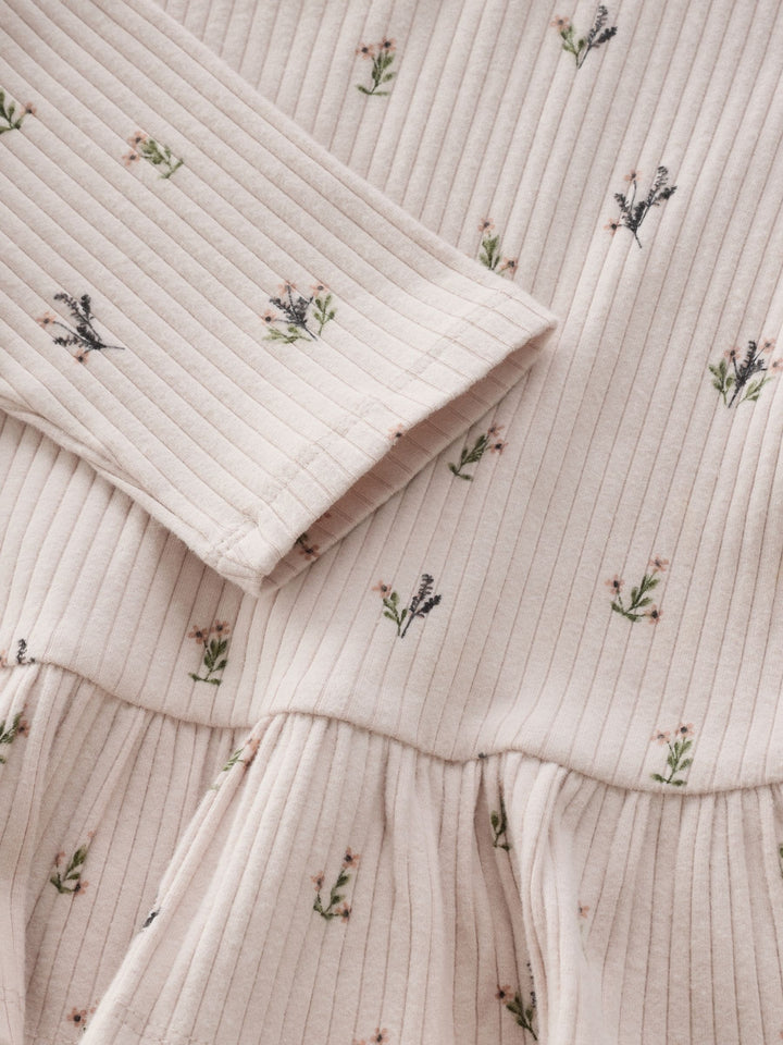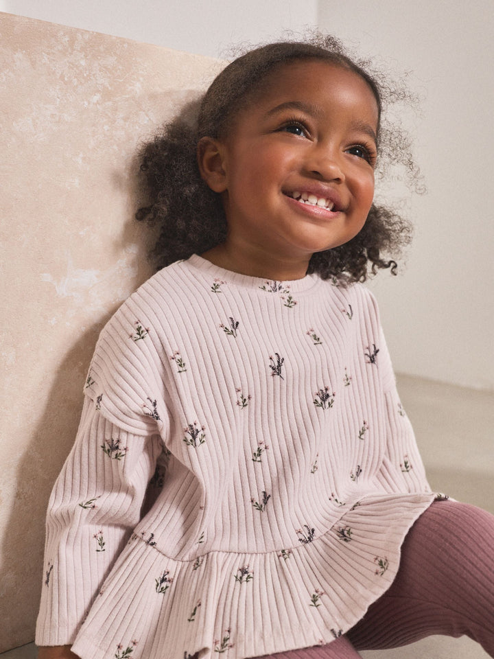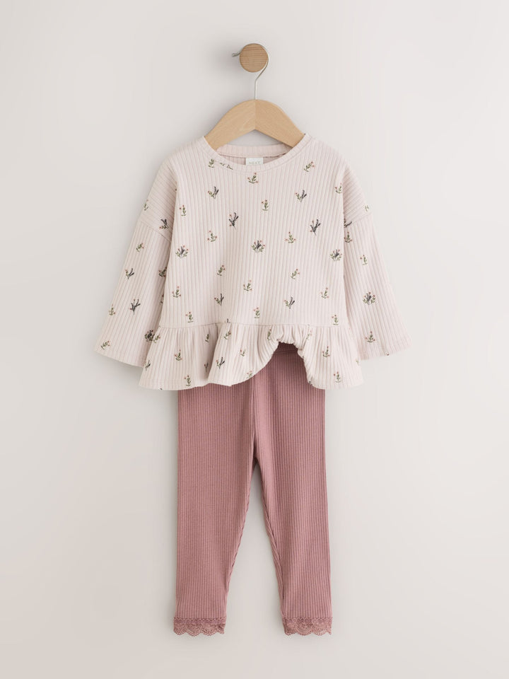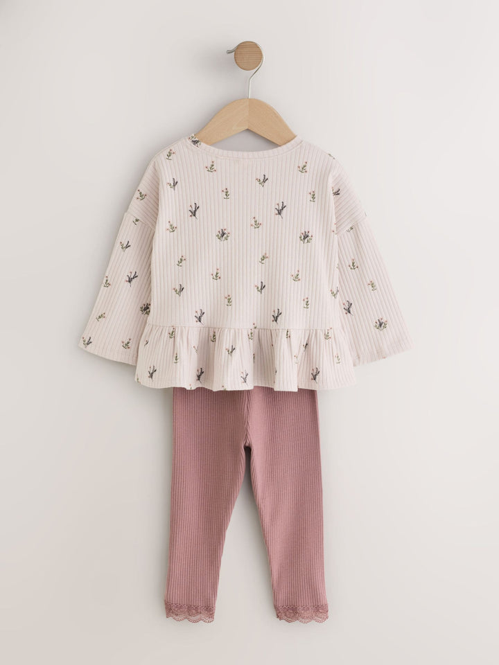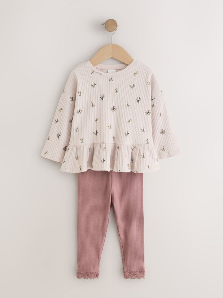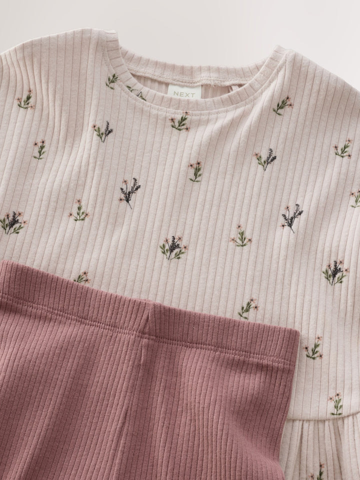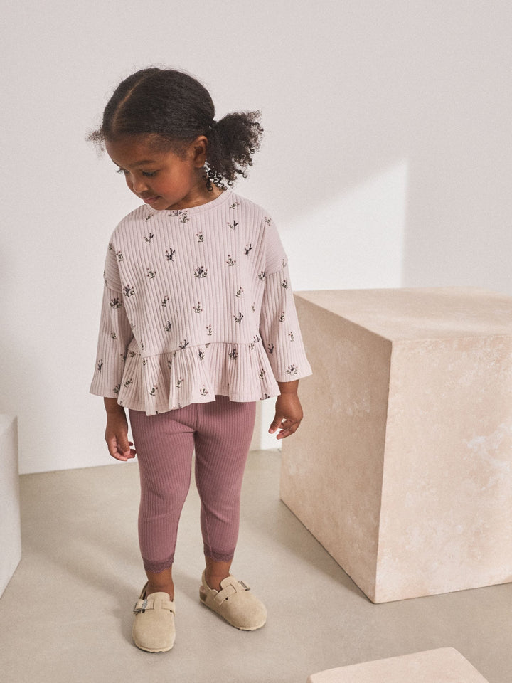 Mauve Purple Ditsy Floral Ribbed Long Sleeve Top and Leggings Set (3mths-7yrs)