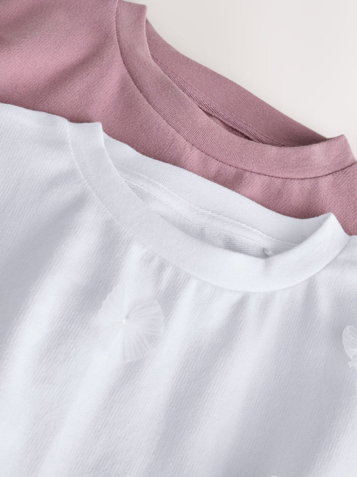 Mauve/White Boxy Bows T-Shirts 2 Pack (3-16yrs)