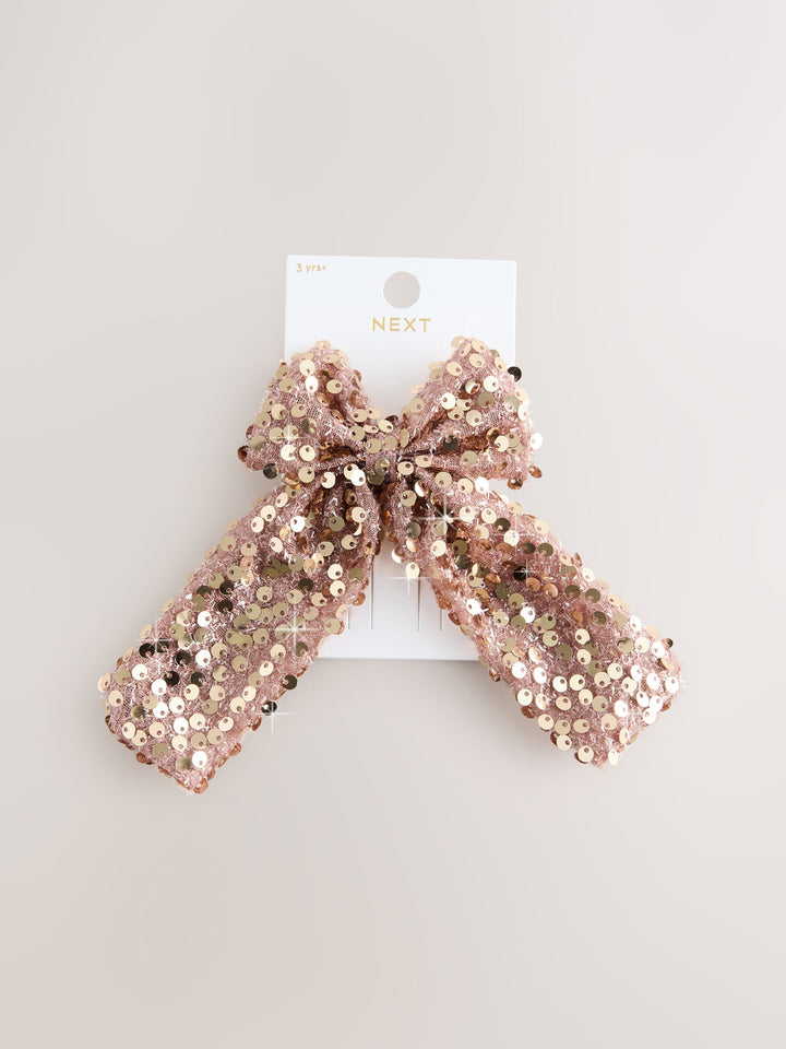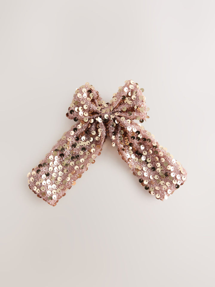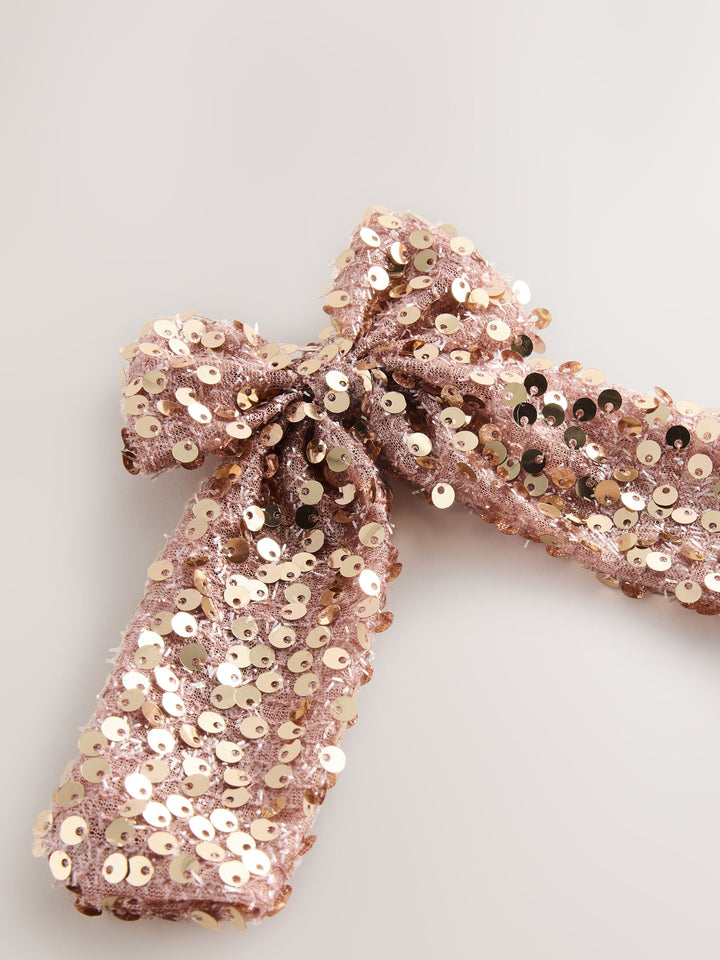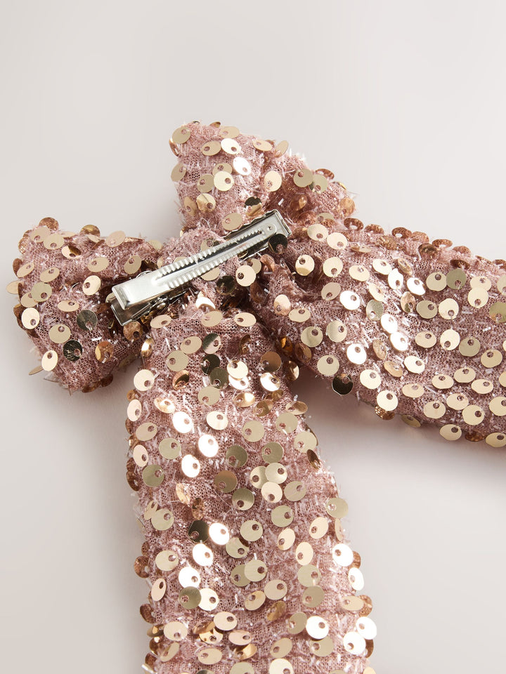 Metallic Rose Gold Sequin Bow Hair Clip