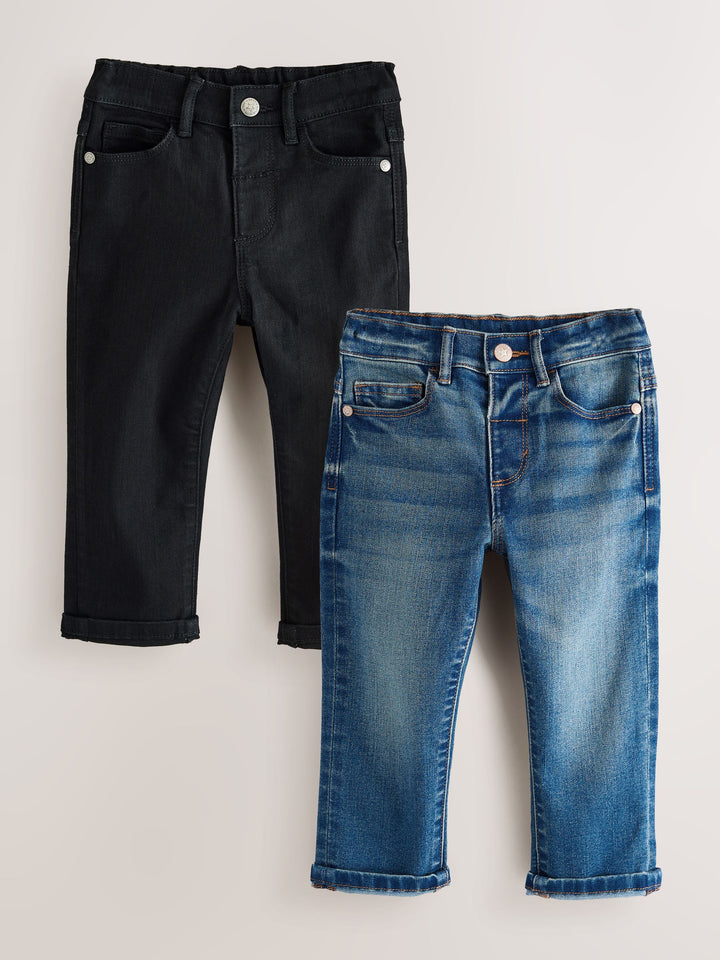 Mid Blue/Black Denim 2 Pack Regular Fit Comfort Stretch Jeans (3mths-7yrs)