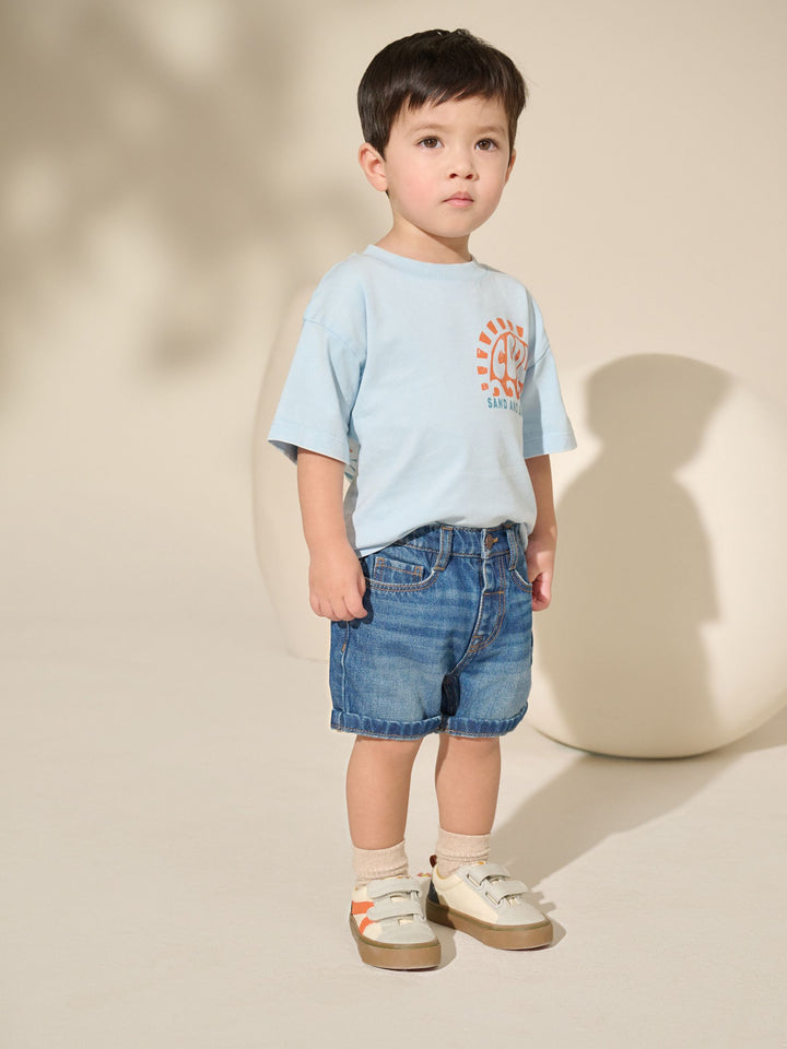 Amp up summer essentials with a pair of denim shorts. With an elasticated waist for added comfort, these comfy and cool shorts are complete with pockets and zip fly and button fastening. 100% cotton Elasticated waist Zip fly and button fastening Pockets 100% Cotton. Country of Origin: Bangladesh