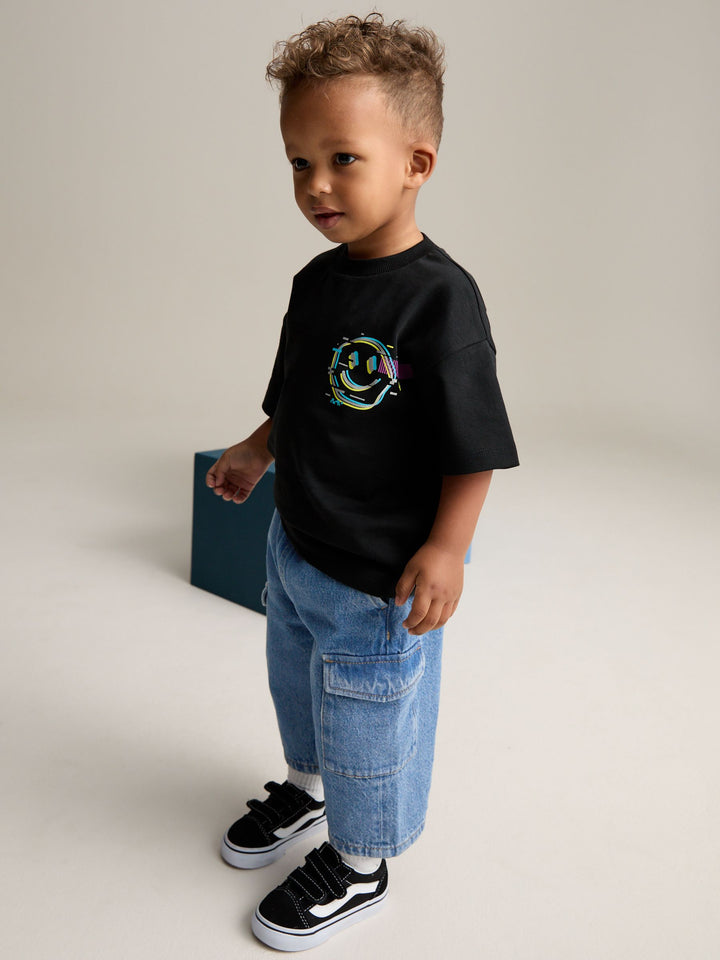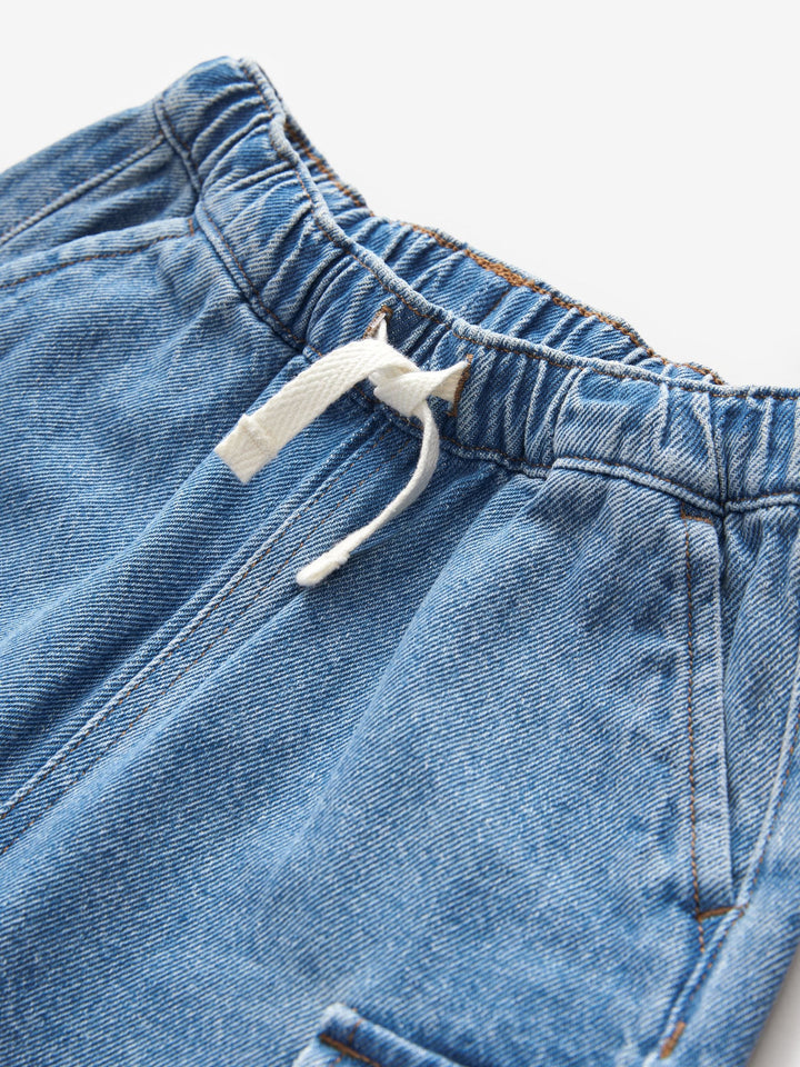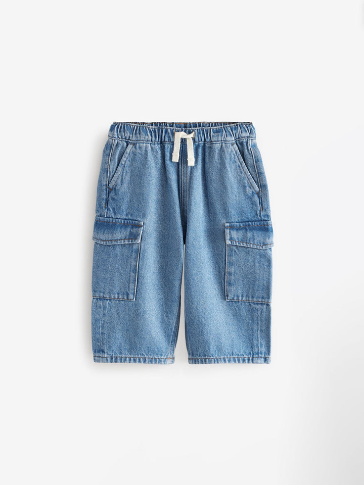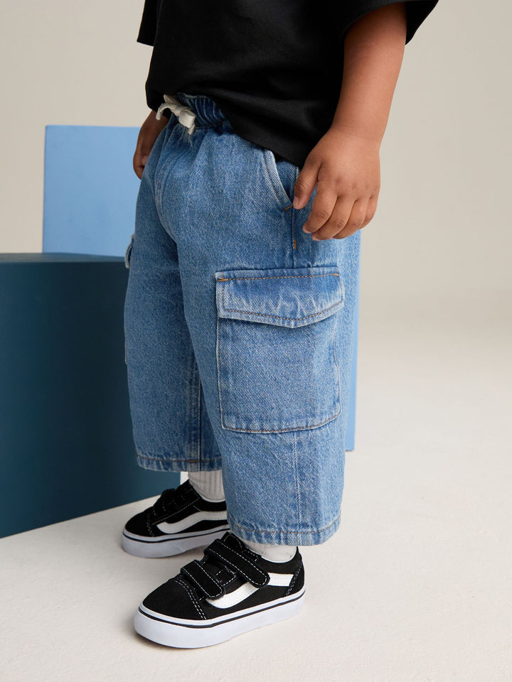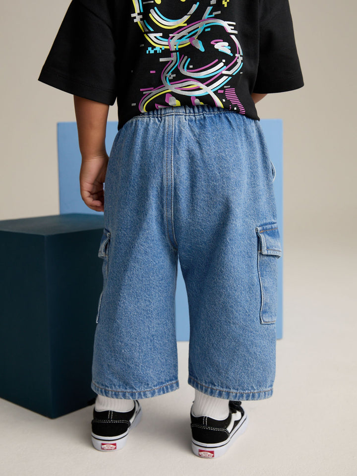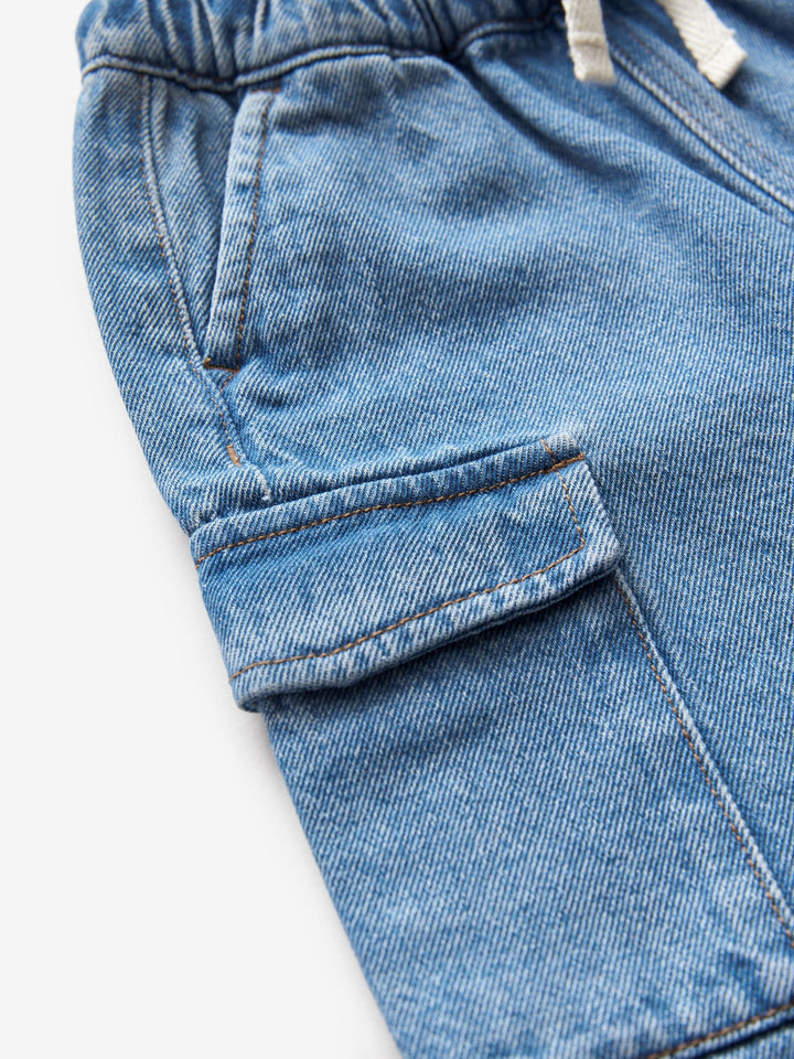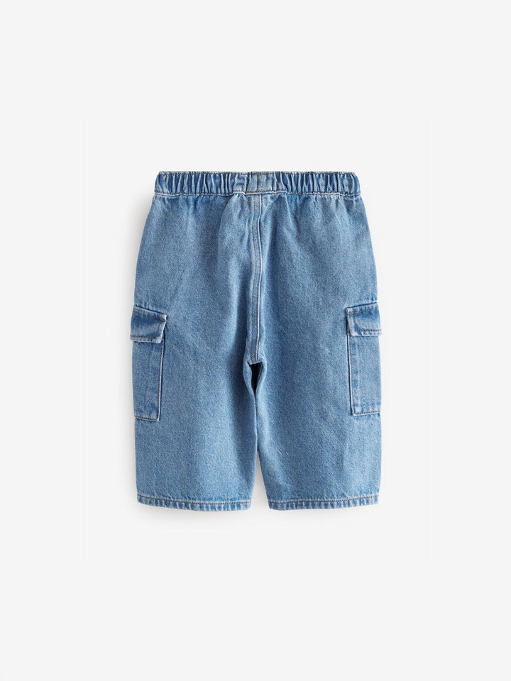 Mid Blue Denim Wide Leg Pull On Cargo 100% Cotton Jeans (3mths-7yrs)