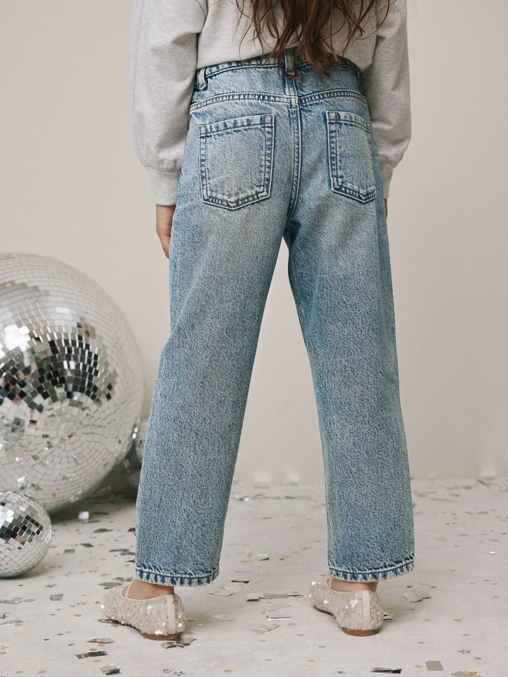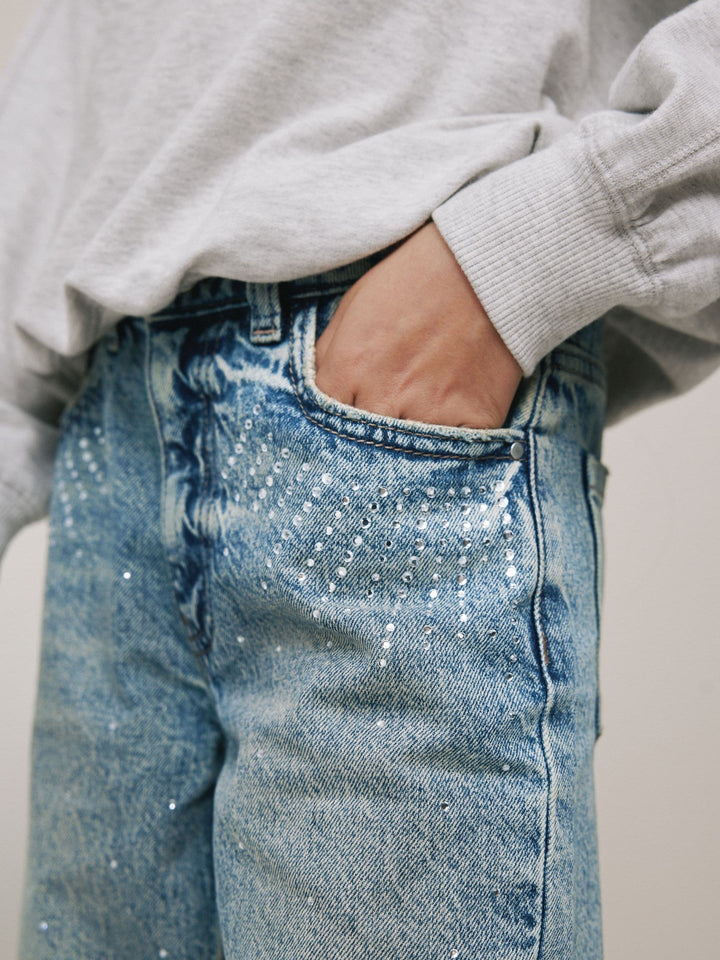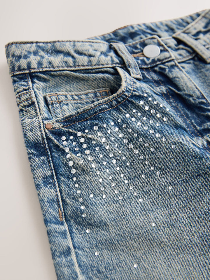 These mid-blue jeans are a fun and stylish choice for their wardrobe. The straight leg fit offers a timeless look, while the embellished detail on the front pocket adds a touch of sparkle. With a zip fly and adjustable waist, these jeans are a versatile and fashionable option for a casual day or a special occasion Embellished front pockets Straight leg fit Zip and button fly fastening Adjustable waistband Functional pockets Belt loops 100% Cotton. Country of Origin: Bangladesh