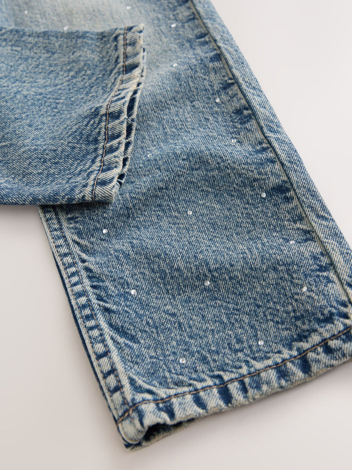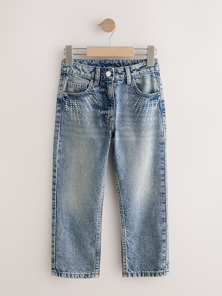 Mid Blue Pocket Detail Embellished Straight Leg Jeans (3-16yrs)