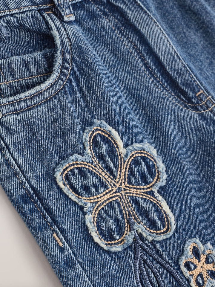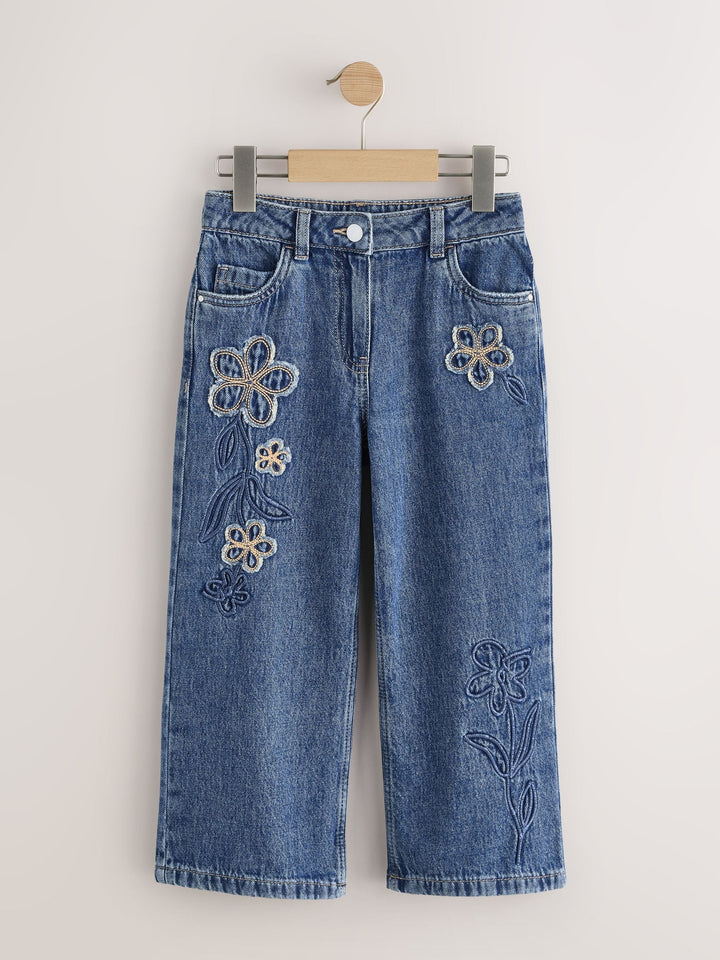 Mid Blue Wide Floral Print Embellished Jeans (3-16yrs)