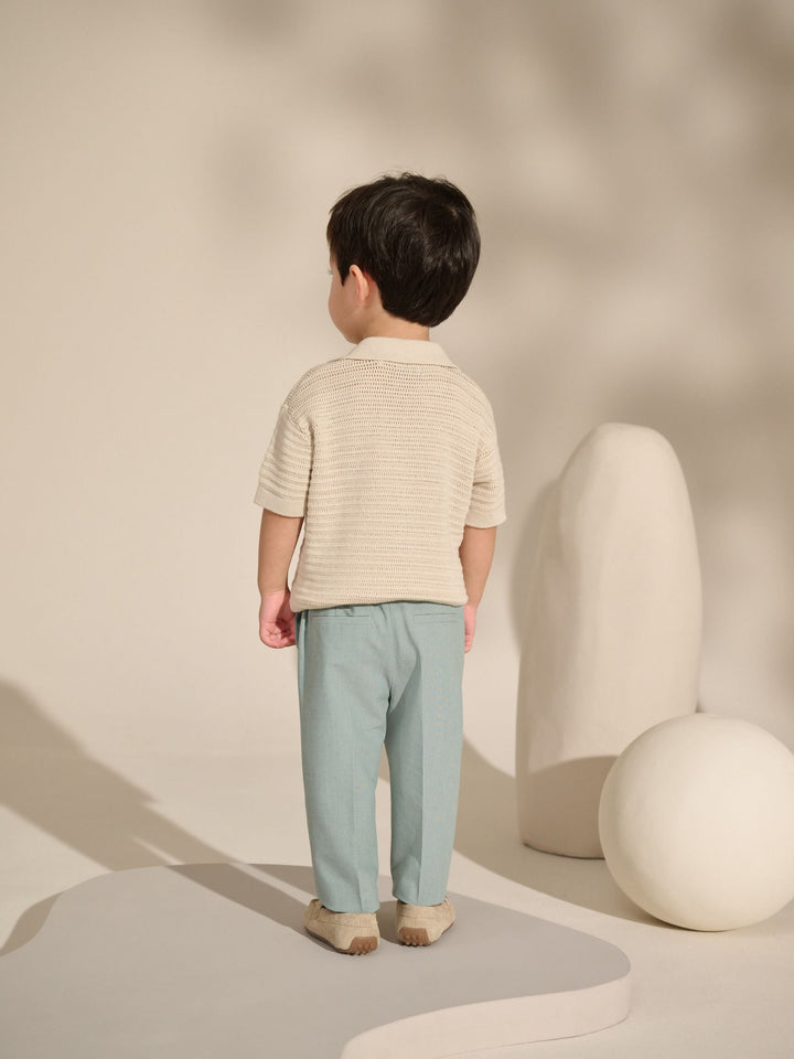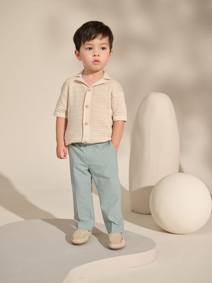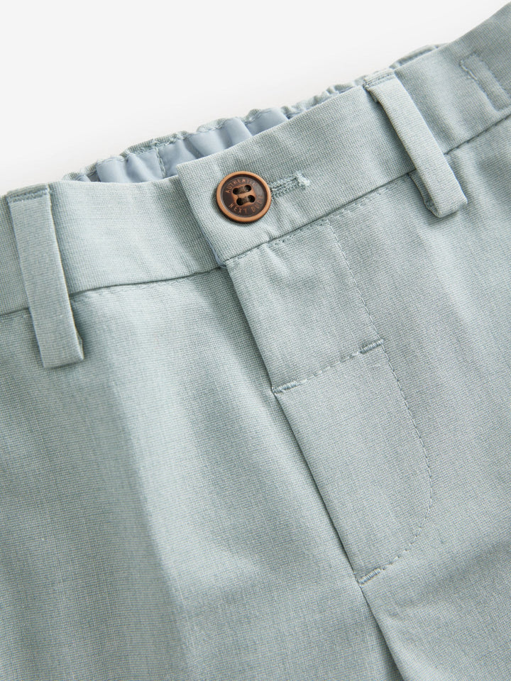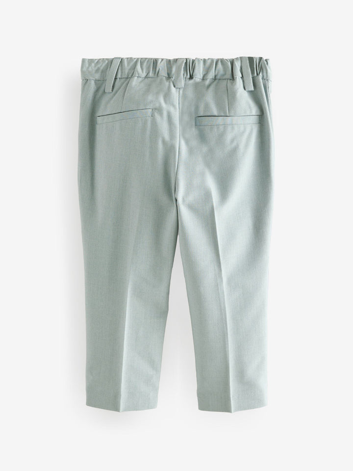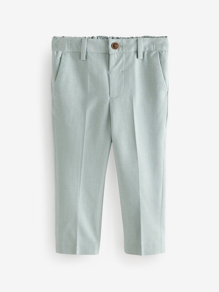 These smart trousers are perfect for his formal look, in a stylish mineral blue hue with an adjustable waistband for a comfortable fit. The trousers have a central leg crease, a button fastening and side and back pockets. Adjustable waistband Central leg crease Button fastening Side and back pockets 69% Polyester, 25% Viscose, 6% Elastane. Country of Origin: Cambodia