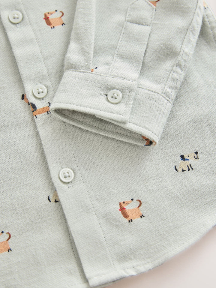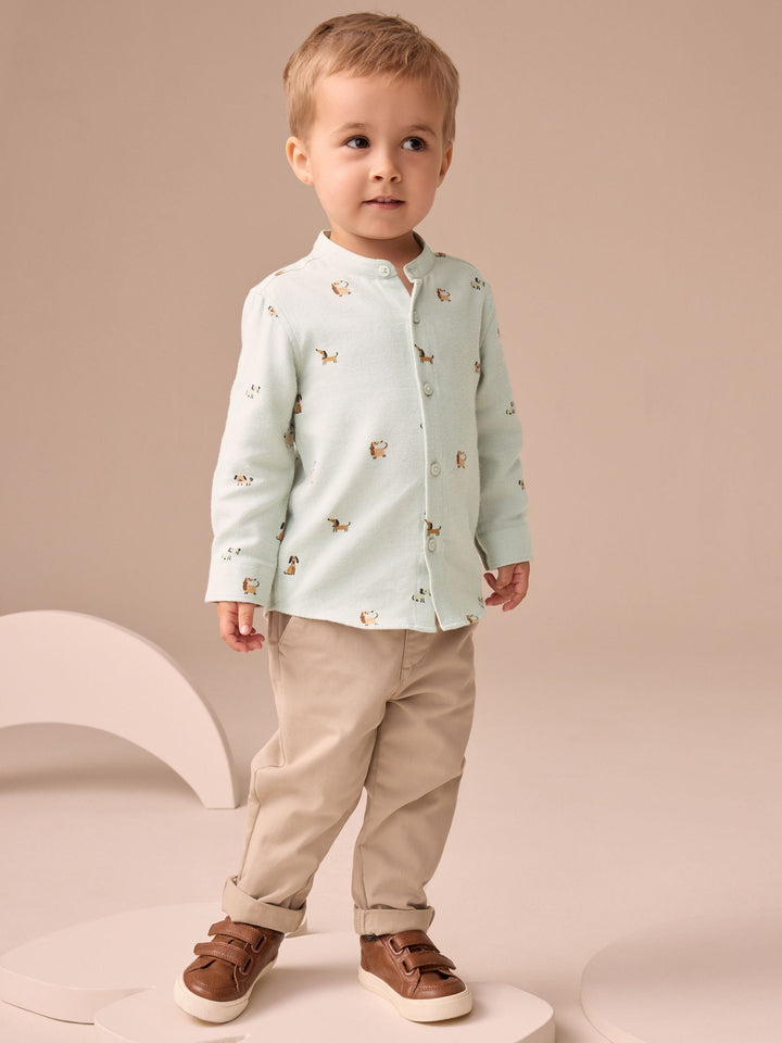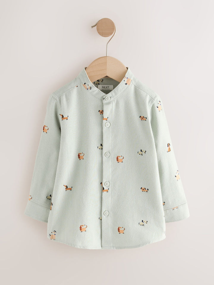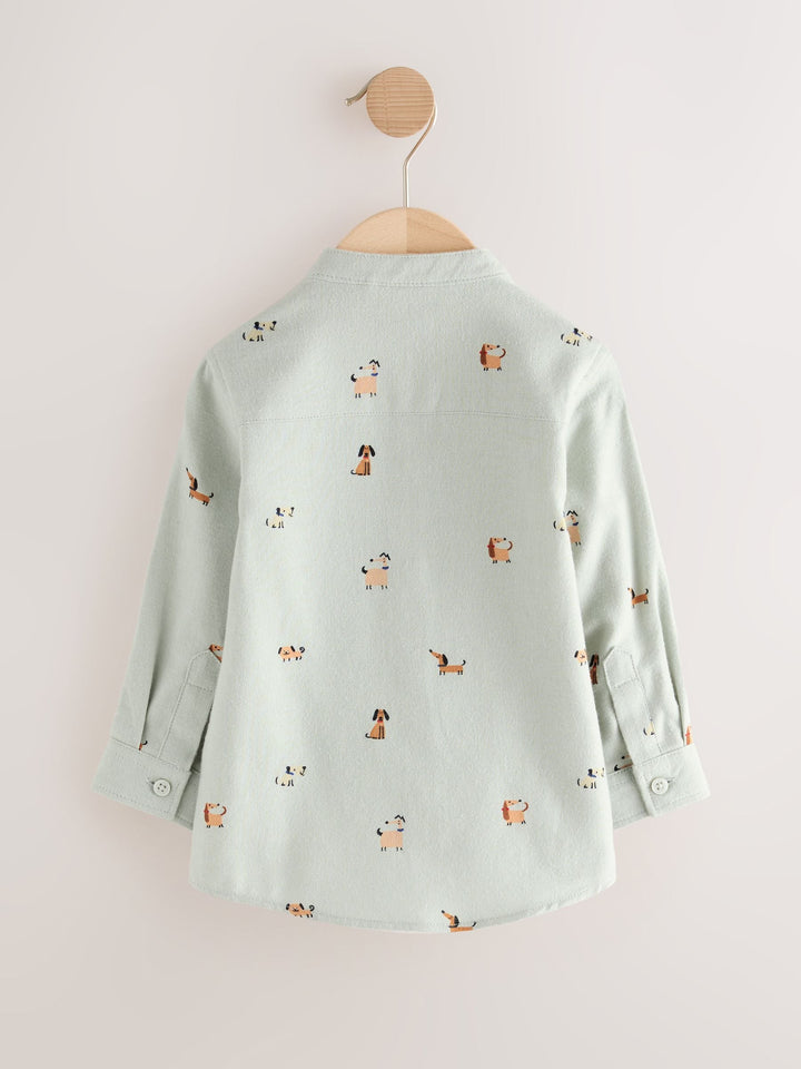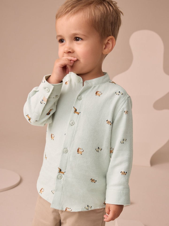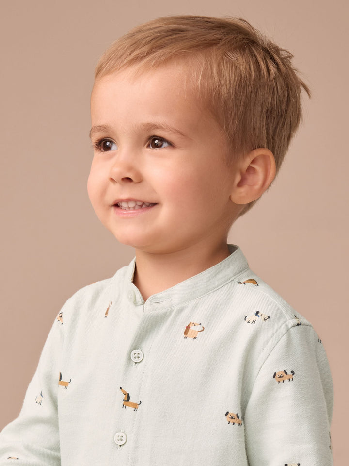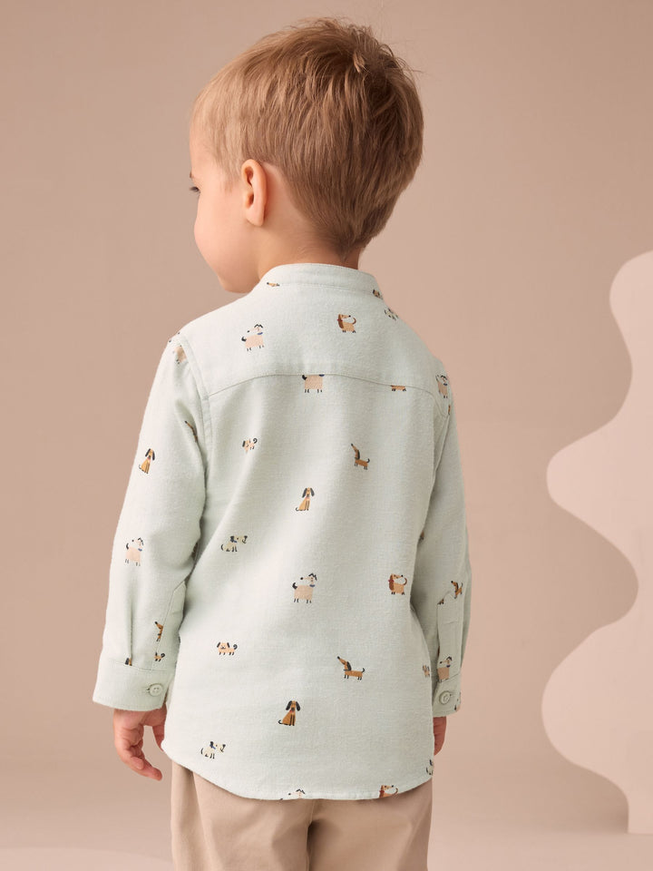 Mint Green Dog Long Sleeve Grandad Collar All-Over Print Character Shirt (3mths-7yrs)