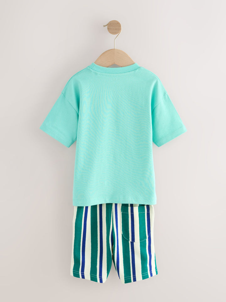 Mint Green Short Sleeve T-Shirt & Pattern Shorts Set (3mths-7yrs)