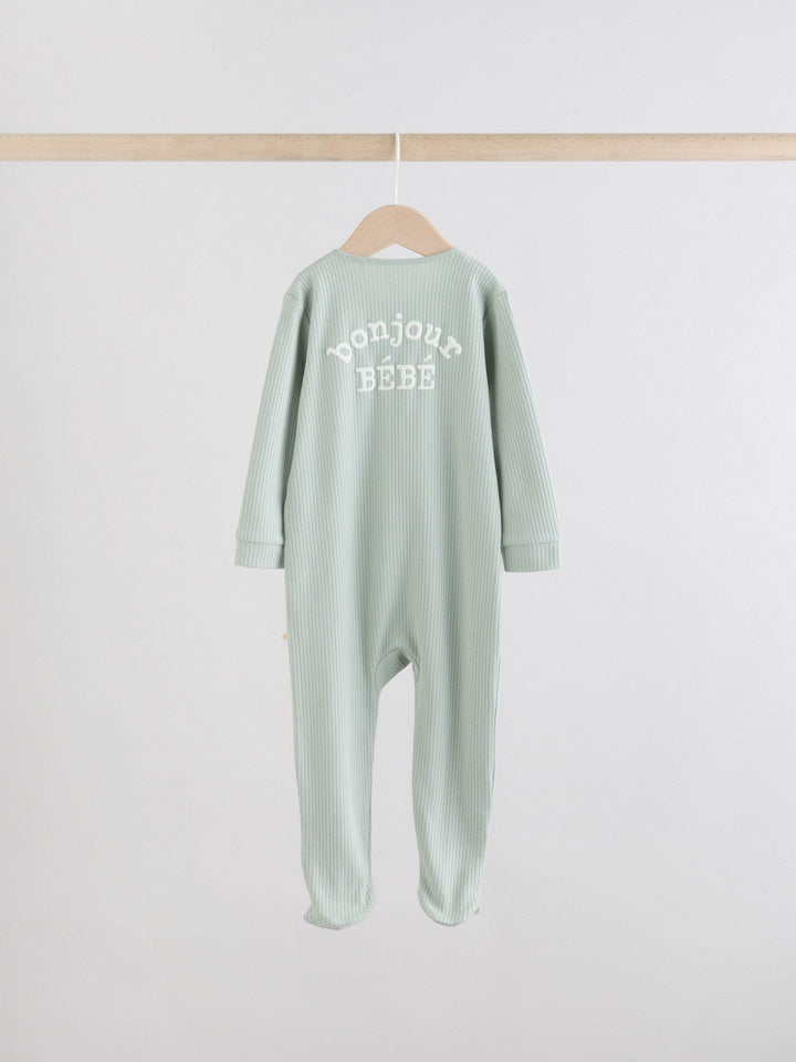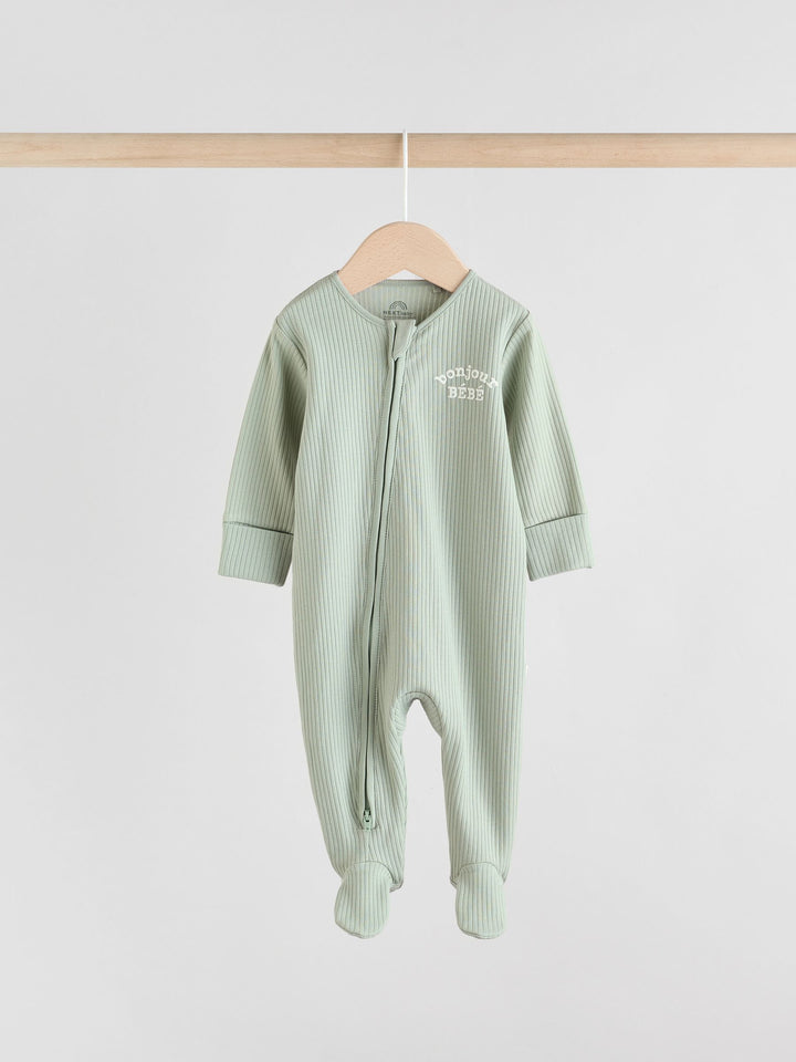 Mint Green Two Way Zip Baby Sleepsuits 3 Pack (0-2yrs)