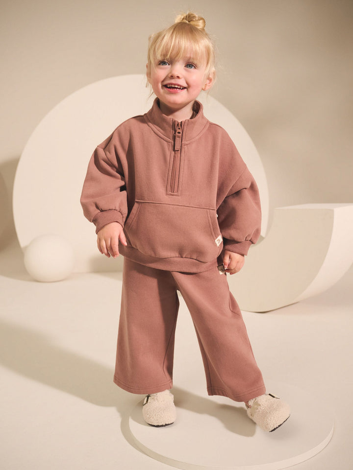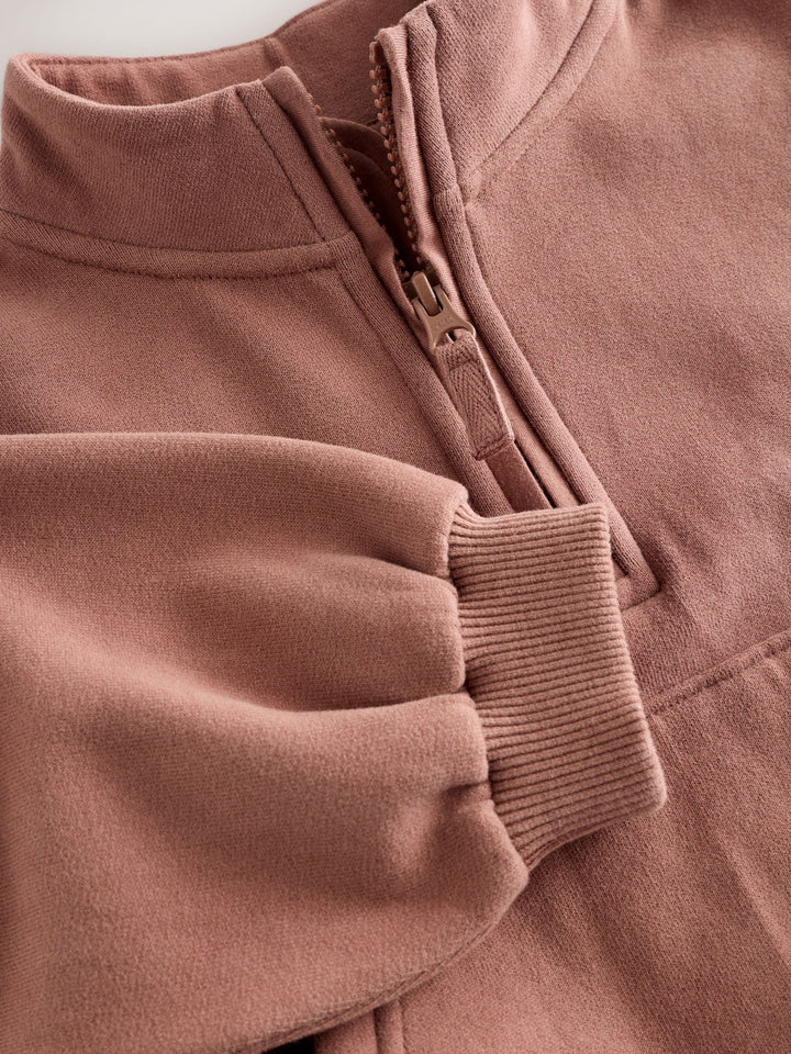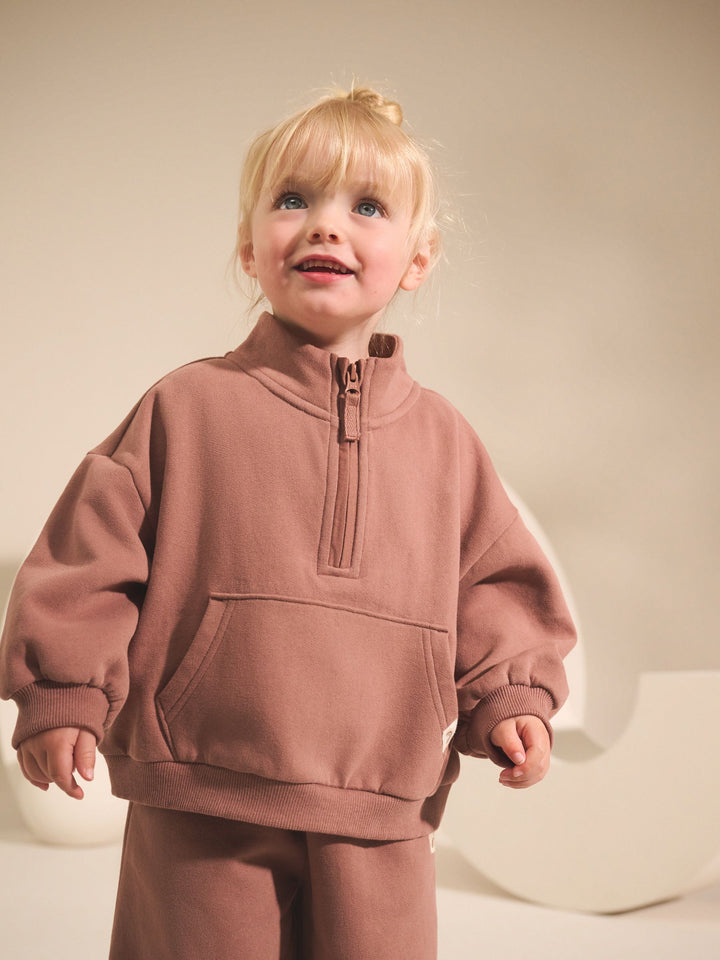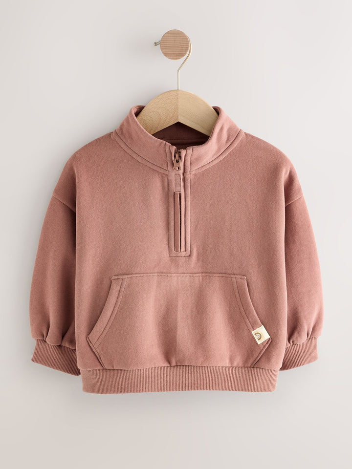 In a cotton-rich blend, this classic half-zip sweatshirt will keep her cosy when layered over her favourite casual t-shirts or dresses, featuring drop shoulders, a kangaroo pocket, a tall collar and ribbed trims. Cotton-rich blend Half-zip fastening Tall collar Kangaroo pocket Drop shoulders Ribbed hems Machine washable. 93% Cotton, 7% Recycled polyester. Country of Origin: Pakistan