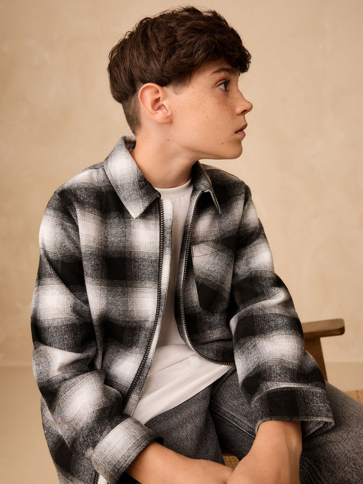 Mono Core Black/White Check Zip Through Overshirt (3-16yrs)