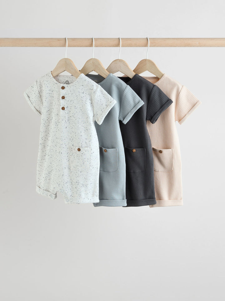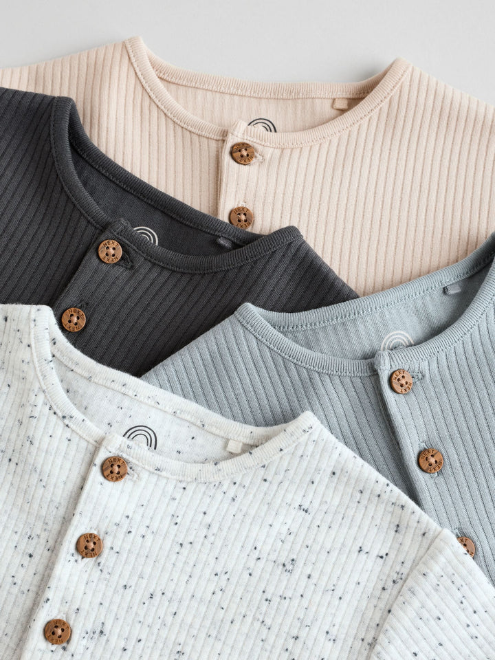Mono Grandad Button Neck 4 Pack Baby Rompers