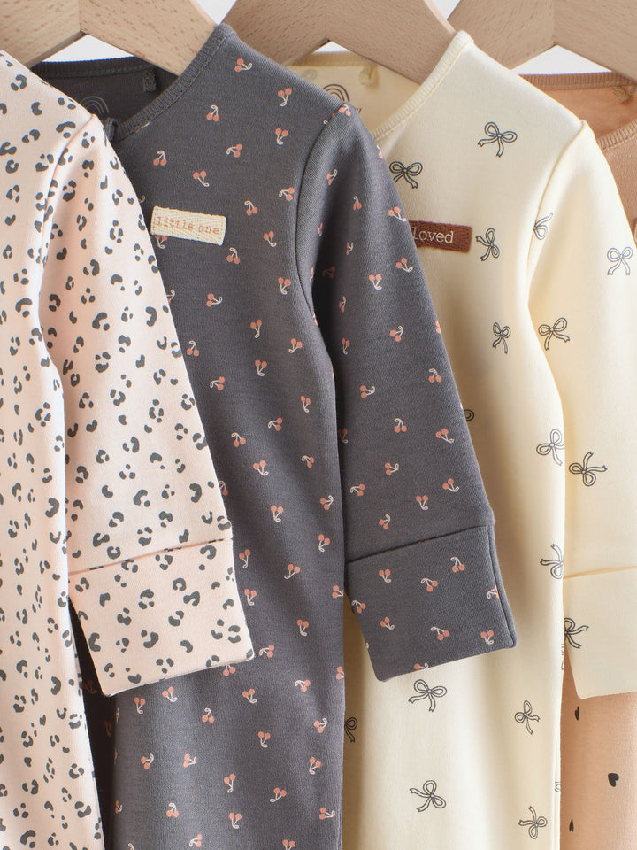 Monochrome Leopard And Cherry Print Two Way Zip Baby Sleepsuits 4 Pack (0mths-3yrs)