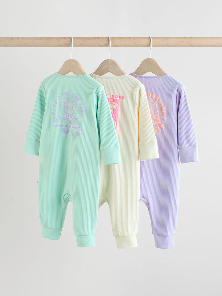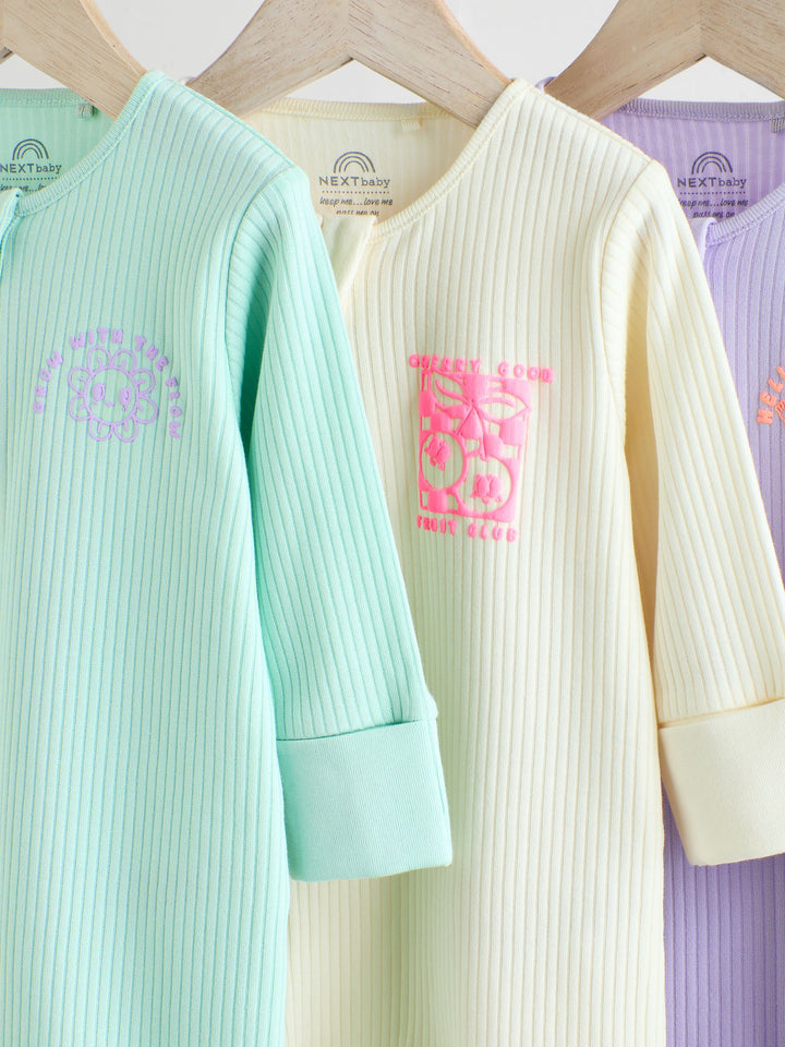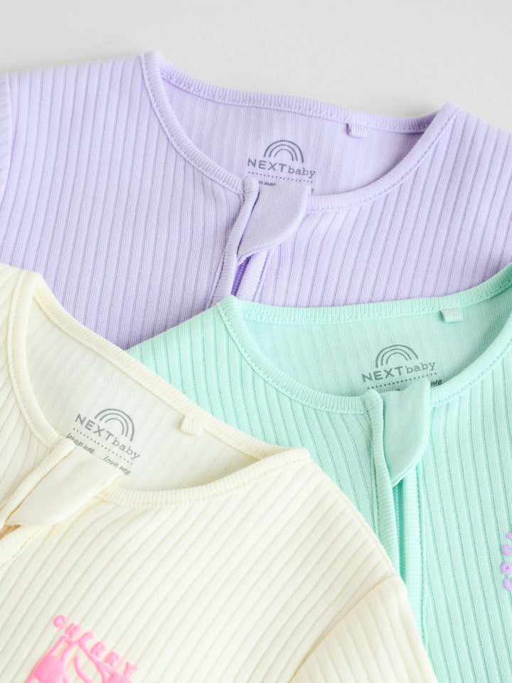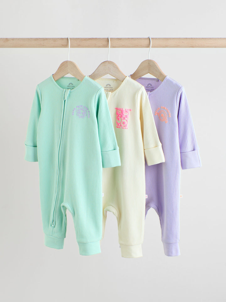 Multi 3 Pack Two Way Zip Baby Sleepsuits (0mths-3yrs)