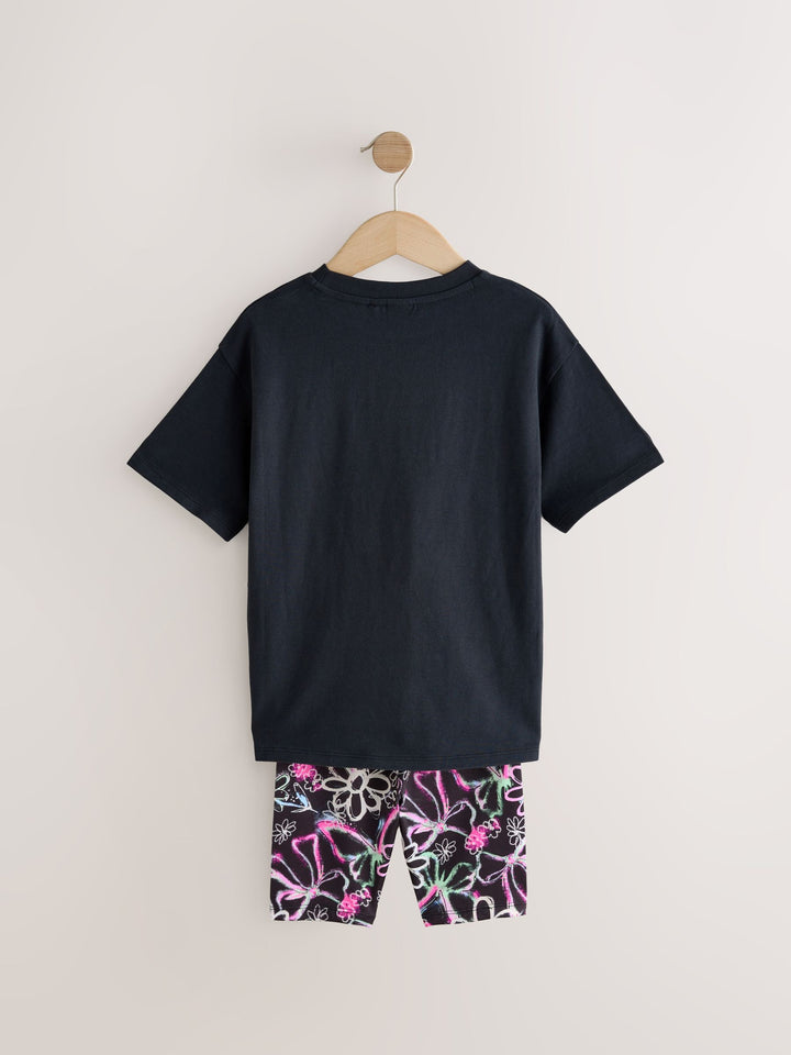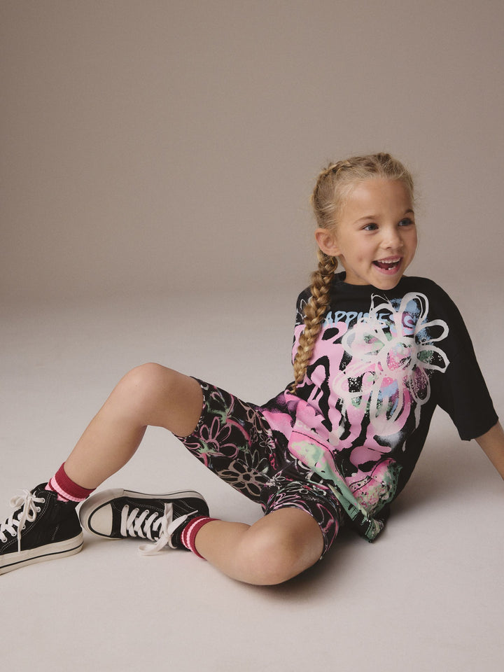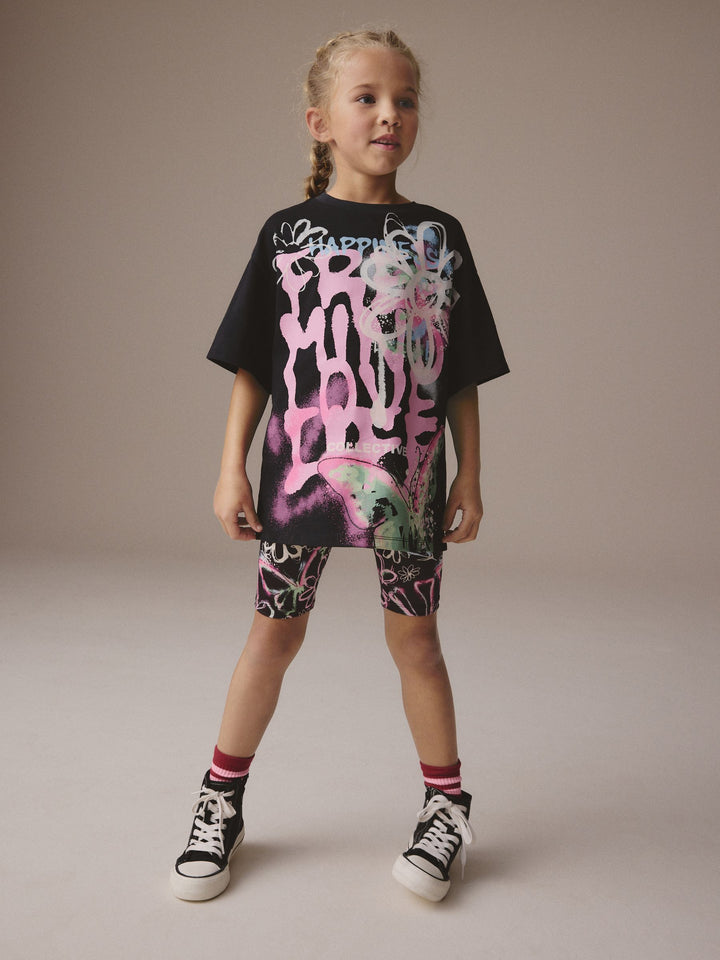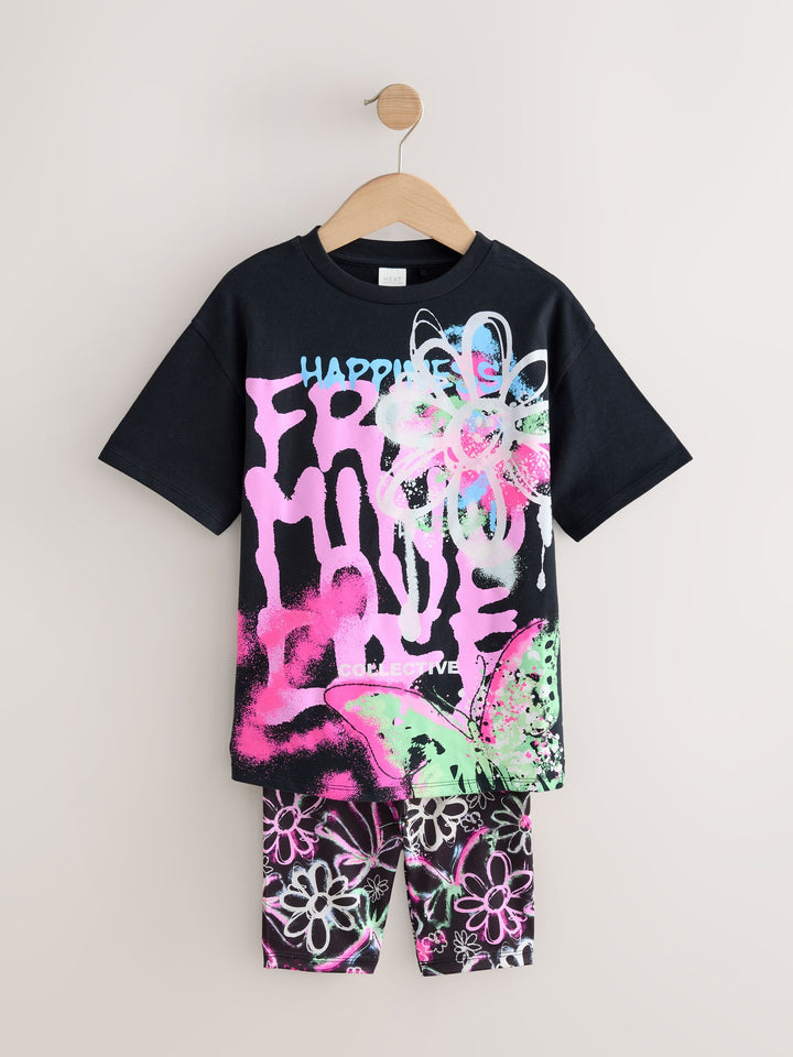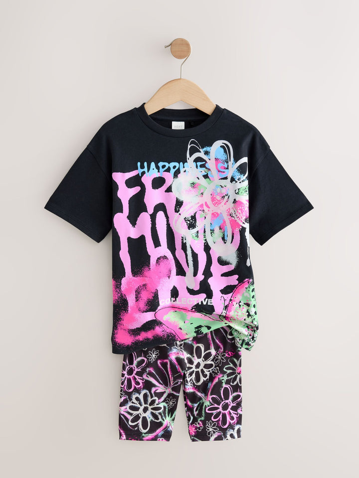 Multi Graffiti T-Shirt And Cycling Shorts Set (3-16yrs)