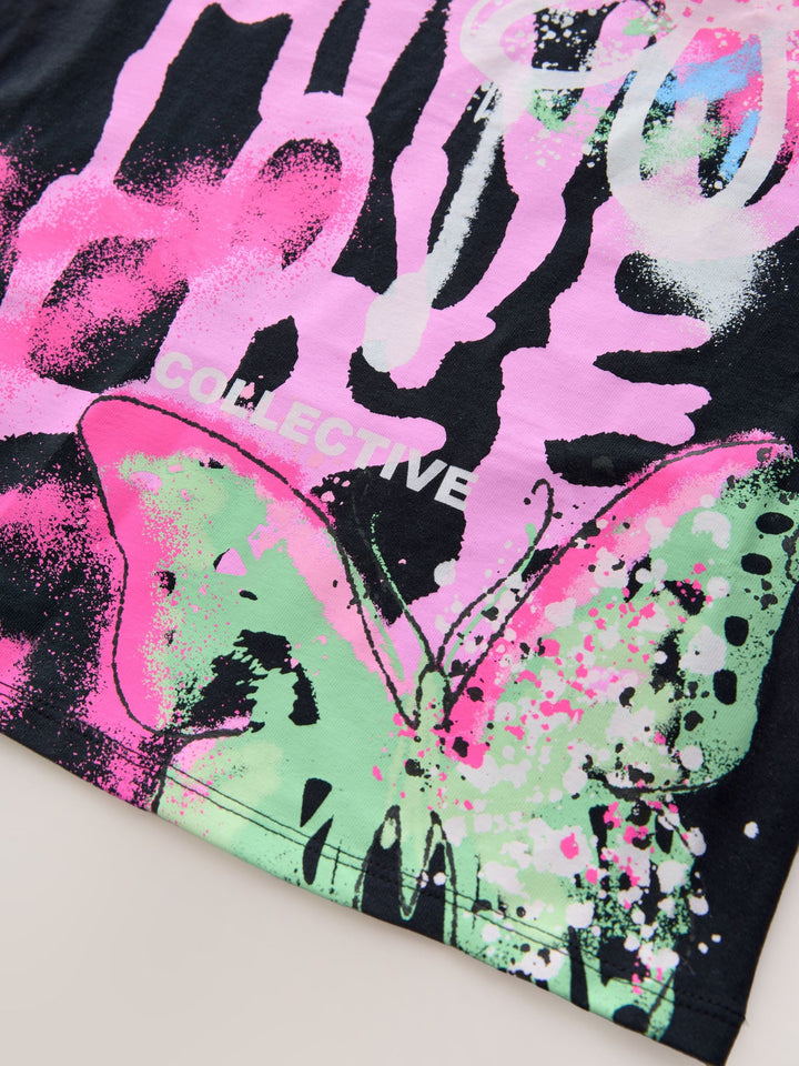 This summer-ready 2-piece set is ready for adventure, featuring a pure-cotton t-shirt with a crewneck collar and short sleeves and a multi-coloured graffiti print, alongside a pair of matching cycling shorts with a comfortable stretchy fabric. 2-piece set 100% cotton t-shirt Graphic print Cycling shorts Stretch fabric Machine washable. T-shirt 100% Cotton. Trouser 90% Recycled polyester, 10% Elastane. Country of Origin: Sri Lanka