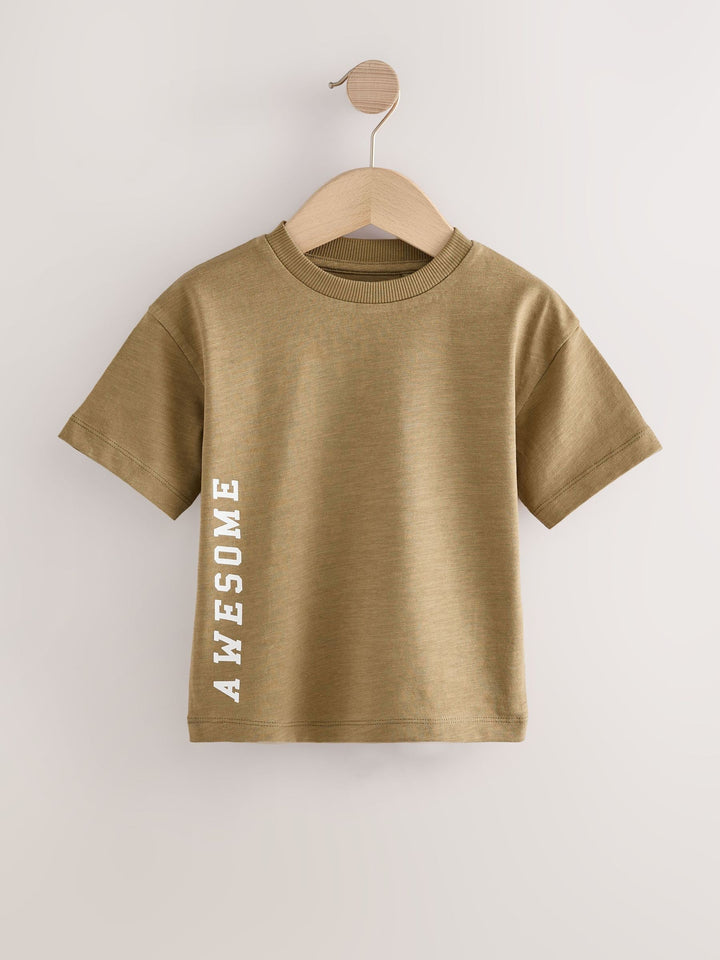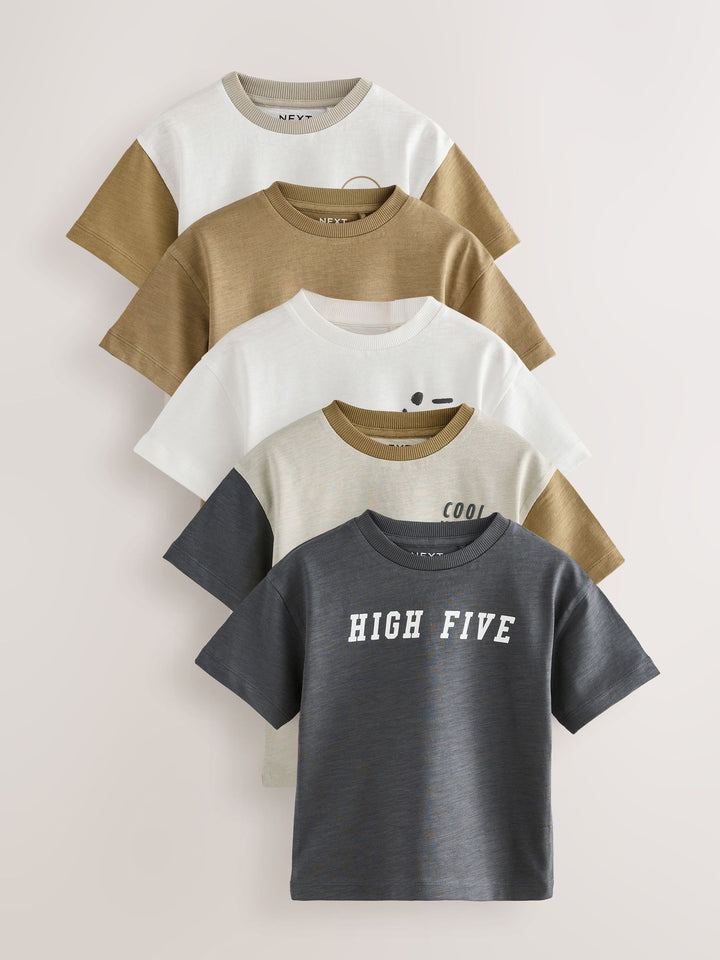 Multi Neutral Slogan Short Sleeve T-Shirts 5 Pack (3mths-7yrs)