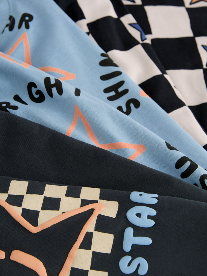 Multi Star and Checkerboard Oversized Pyjamas 3 Pack (9mths-10yrs)