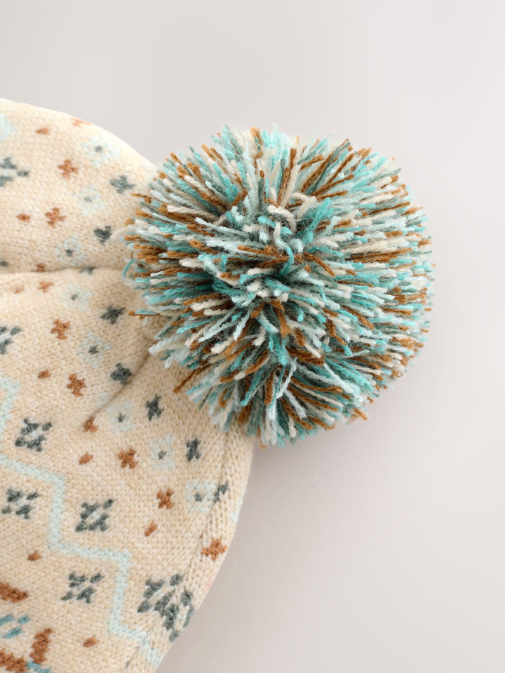 Natural Fairisle Pattern Baby Knitted Pom Beanie Hat (0mths-2yrs)