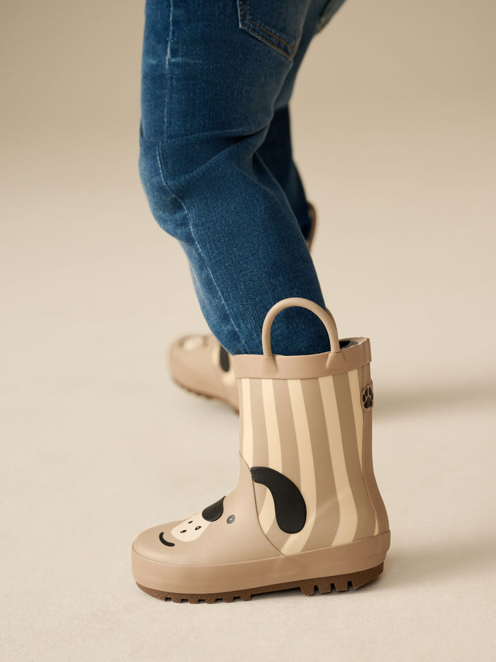 These classic wellington boots are perfect for splashing and playing in the rain, with two handles for easy pull-on wear and a slip-resistant sole, perfect for wet weather. Pull-on handles. Waterproof. Slip-resistant sole. Upper - Other Materials, Lining & Sock - Textile, Sole - Other Materials. Country of Origin: China