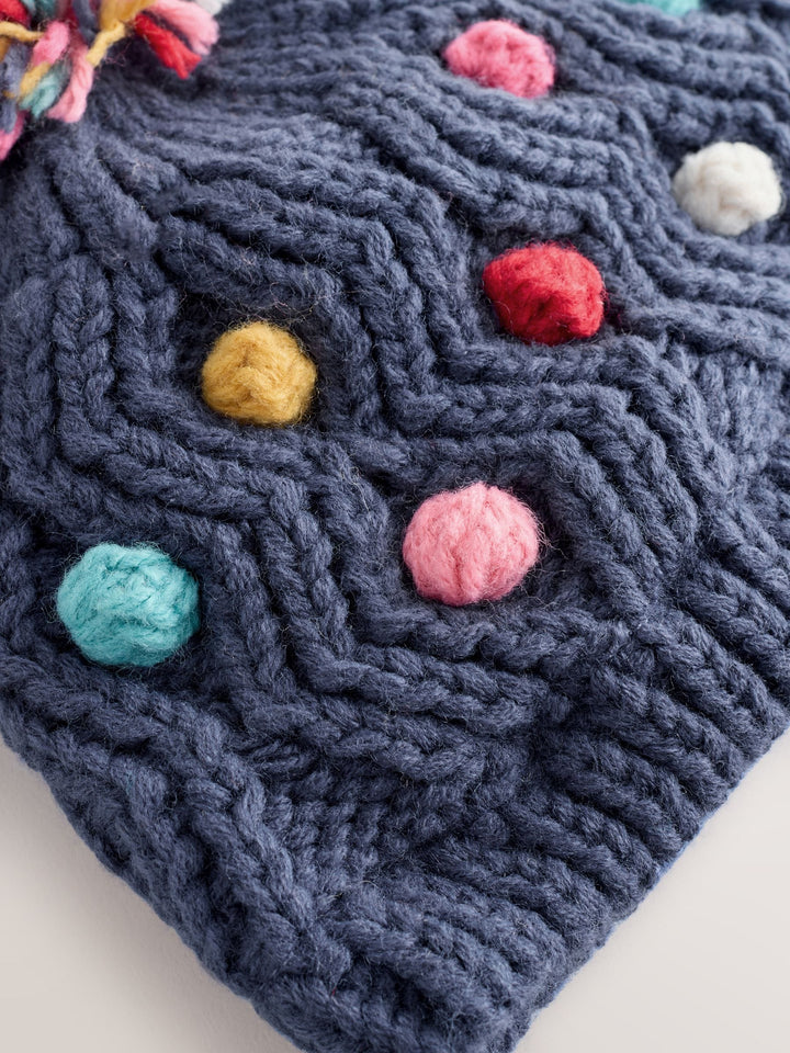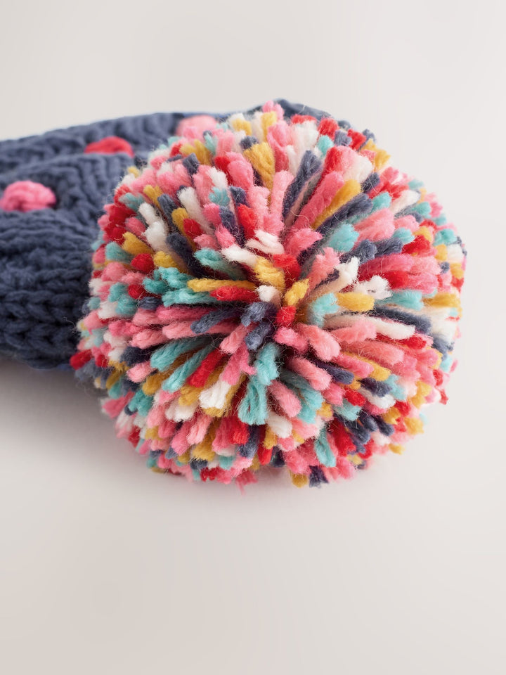 Navy Baby Bright Pom Knitted Hat (0mths-2yrs)