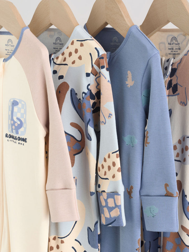Navy Baby Two Way Zip Sleepsuits 4 Pack (0mths-2yrs)