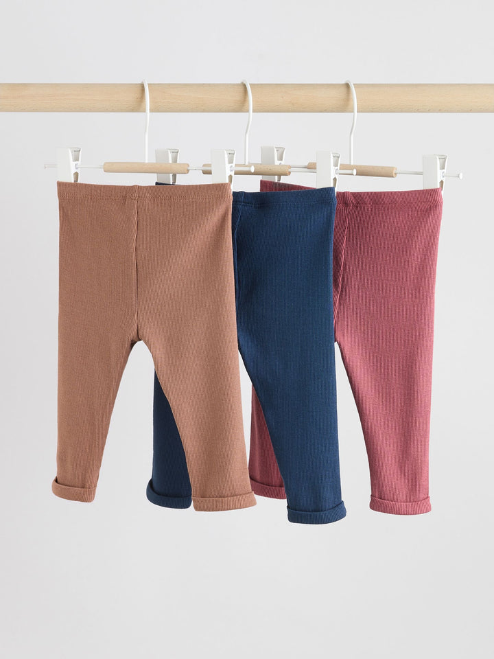 Navy Blue/Brown Baby Jersey Leggings 3 Pack (0mths-2yrs)
