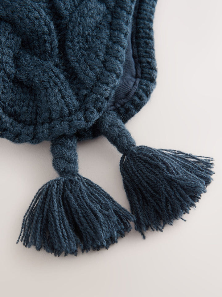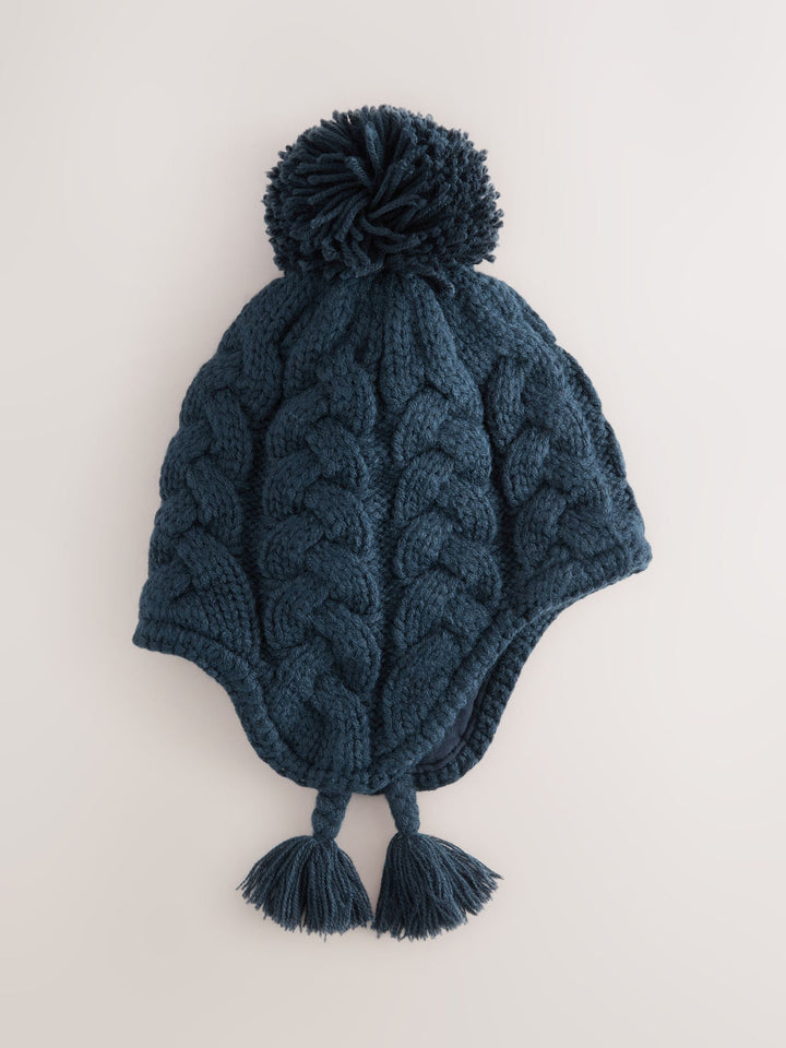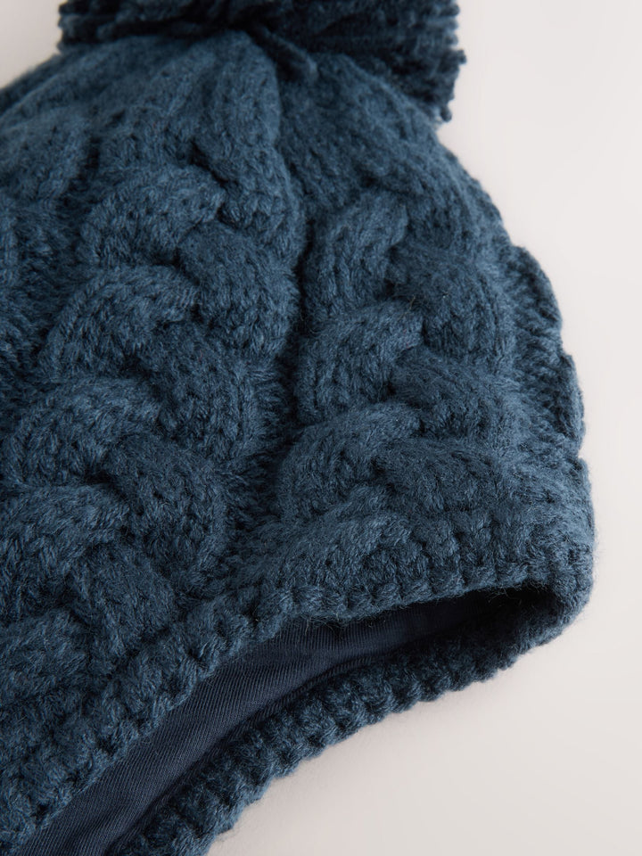 Navy Blue Cable Knit Inca Pom Hat (3mths-10yrs)