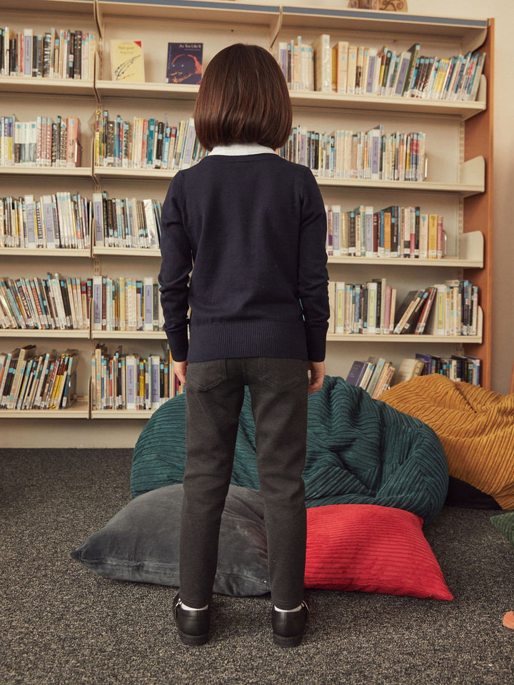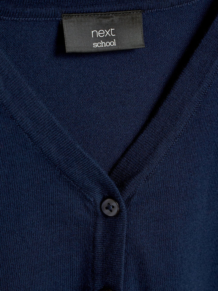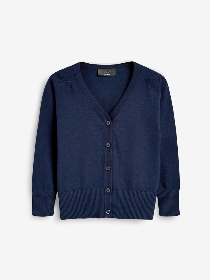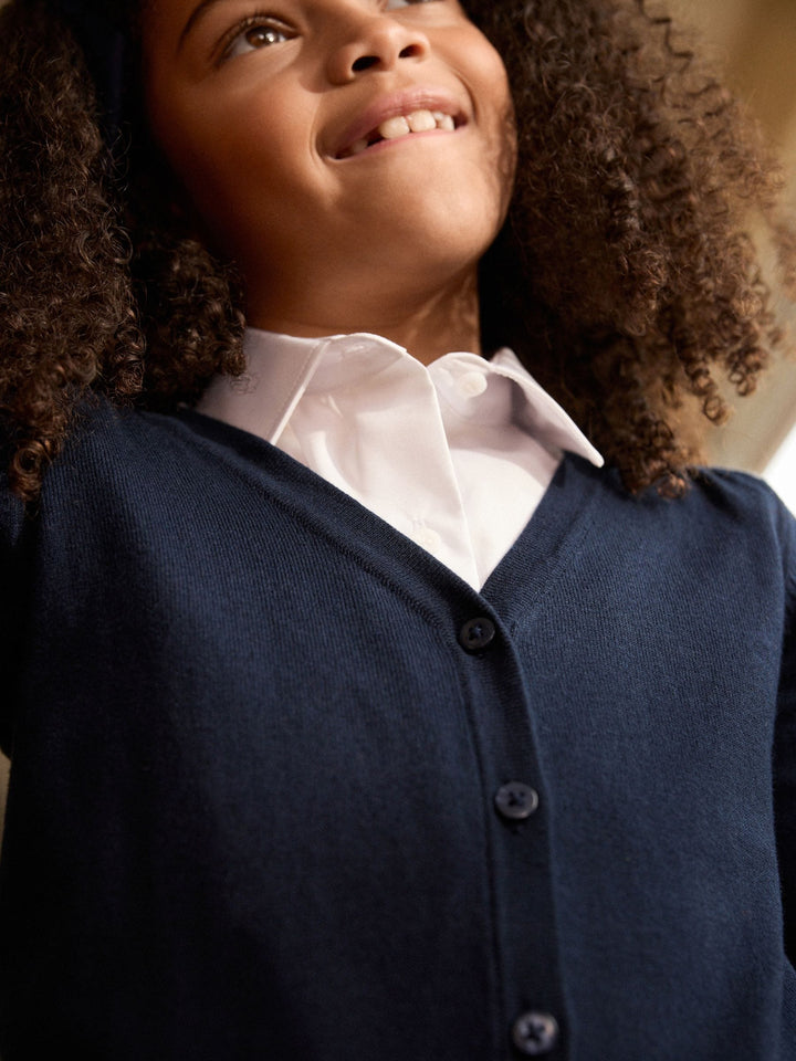 Layering perfection, this navy blue V-neck cardigan is made from a rich-cotton blend for ultimate comfort and breathability throughout the hectic school day – an all-year-round staple. Lasting Colour - Lasting colour properties to ensure colours stay vibrant and bright wash after wash. Cotton Rich - Cotton rich blend for ultimate comfort and breathability. Button-through V-neck style Machine washable Machine washable. 80% Cotton, 20% Nylon. Country of Origin: Bangladesh
