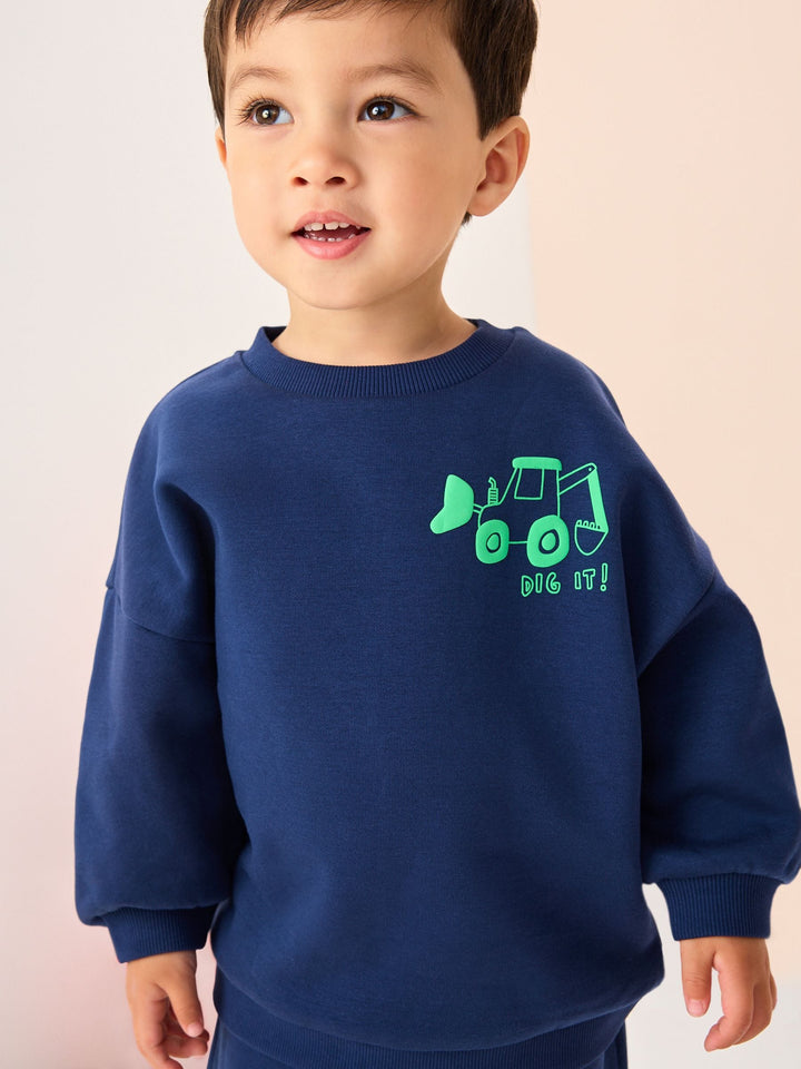 Navy Blue / Green Transport Printed 2 Pack Printed Crew and Joggers Set (3mths-7yrs)