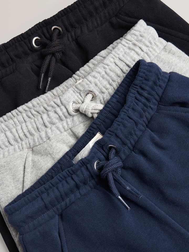 Keep them warm and cosy with this wardrobe essential. Our multipack of soft joggers are made in a soft touch cotton-rich fabric. Designed for a slim leg shape and comfort fit, they're perfect for playtime and beyond. Machine washable. 3 x Jogger 93% Cotton, 7% Recycled polyester. Country of Origin: Pakistan