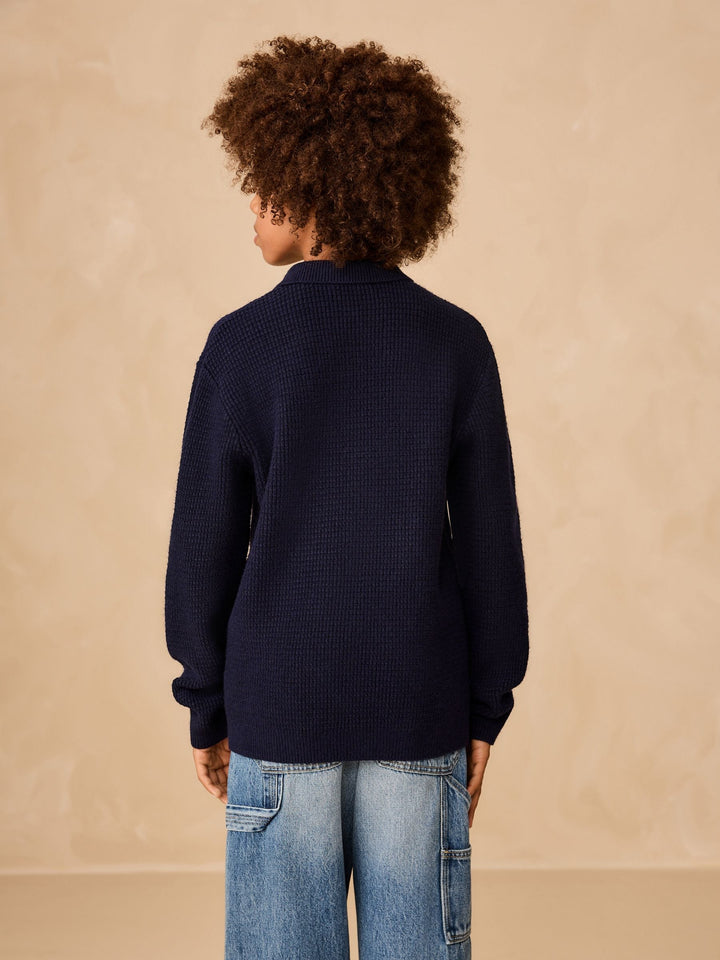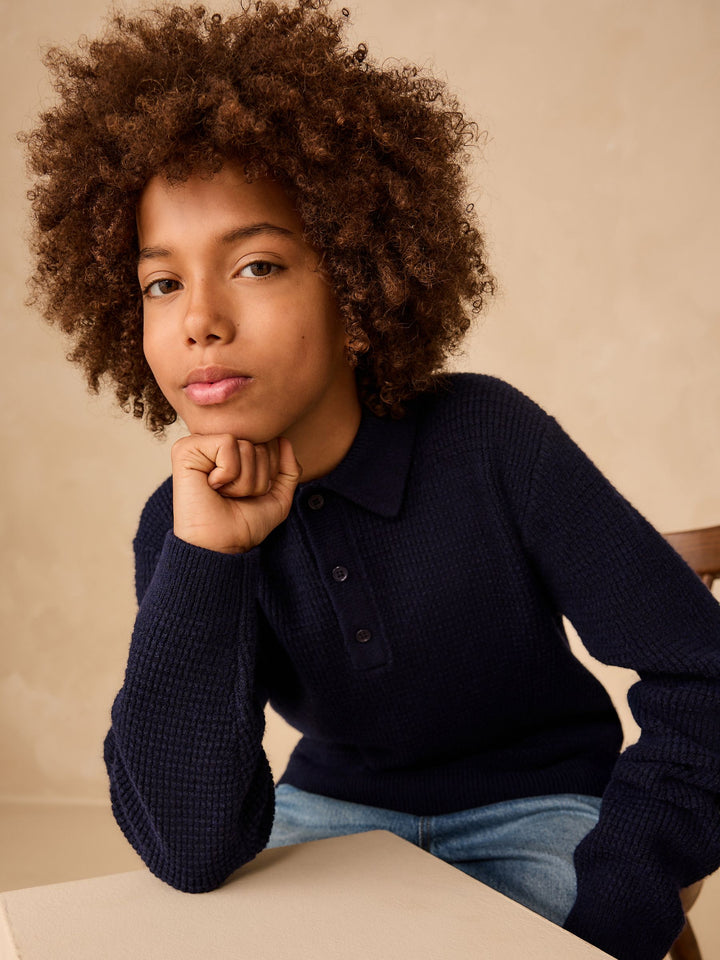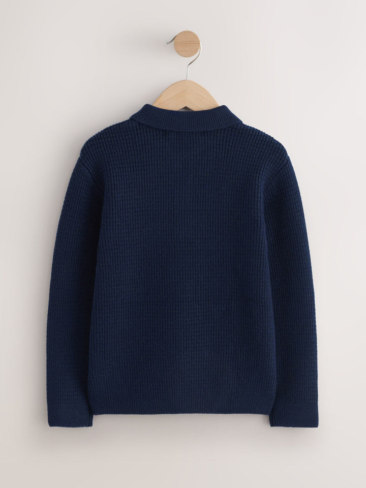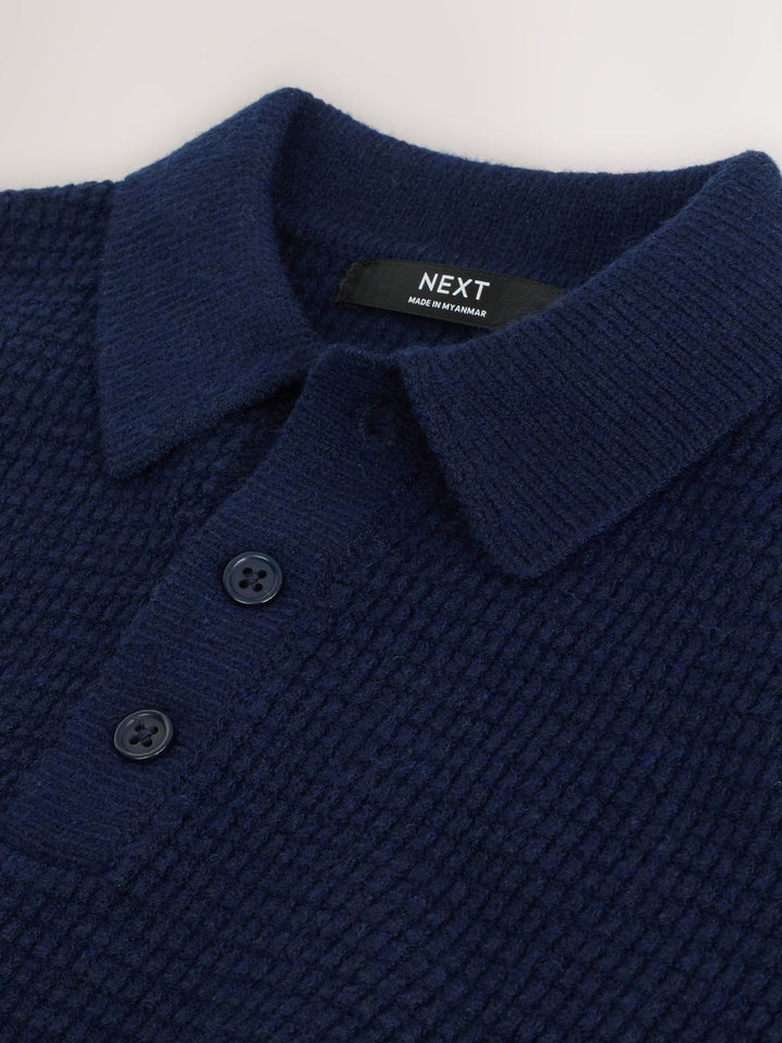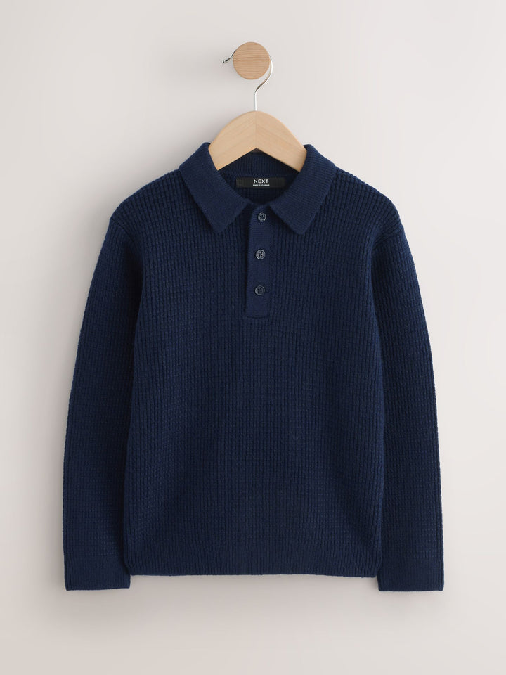 Navy Blue Knitted Button Neck Polo Shirt (3-16yrs)