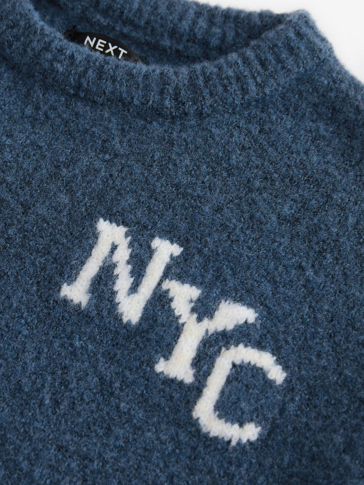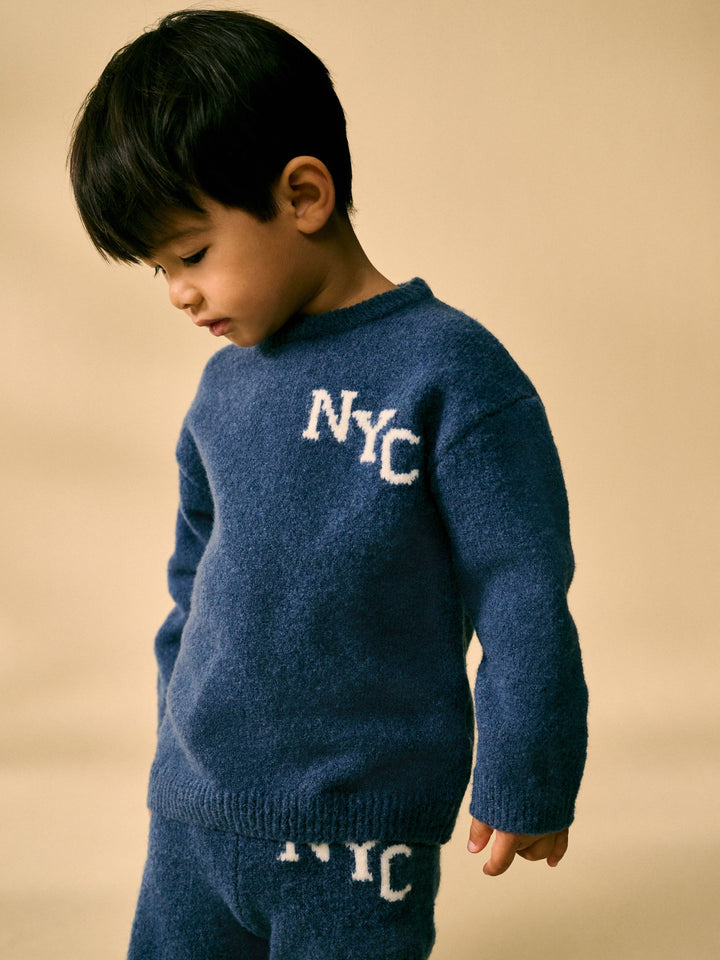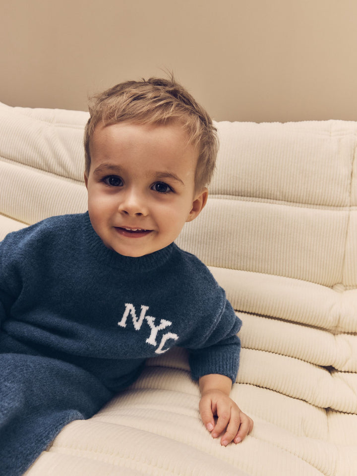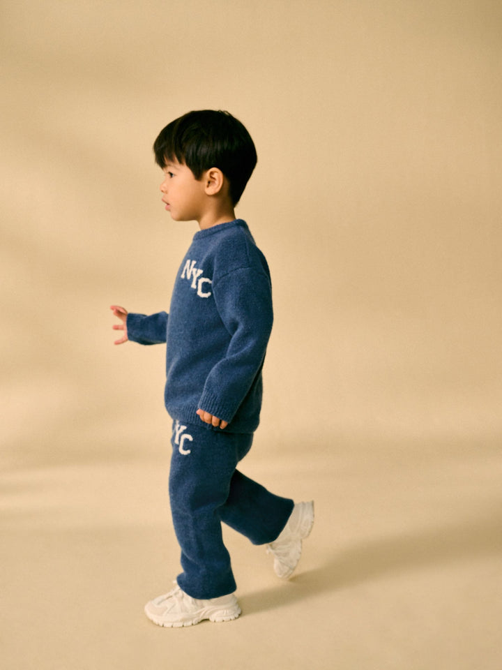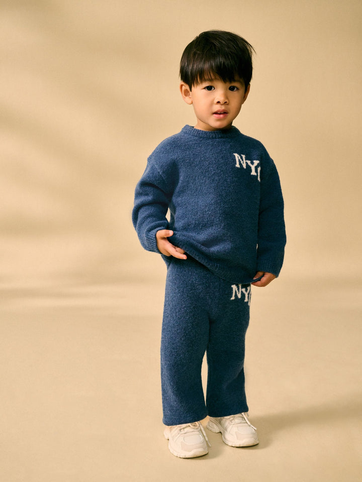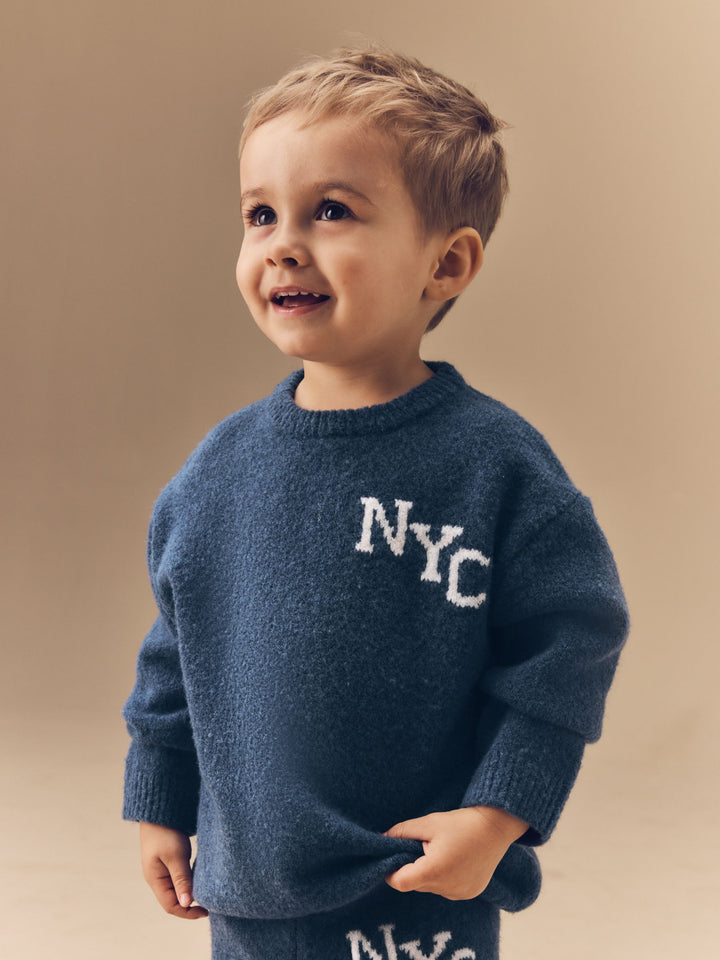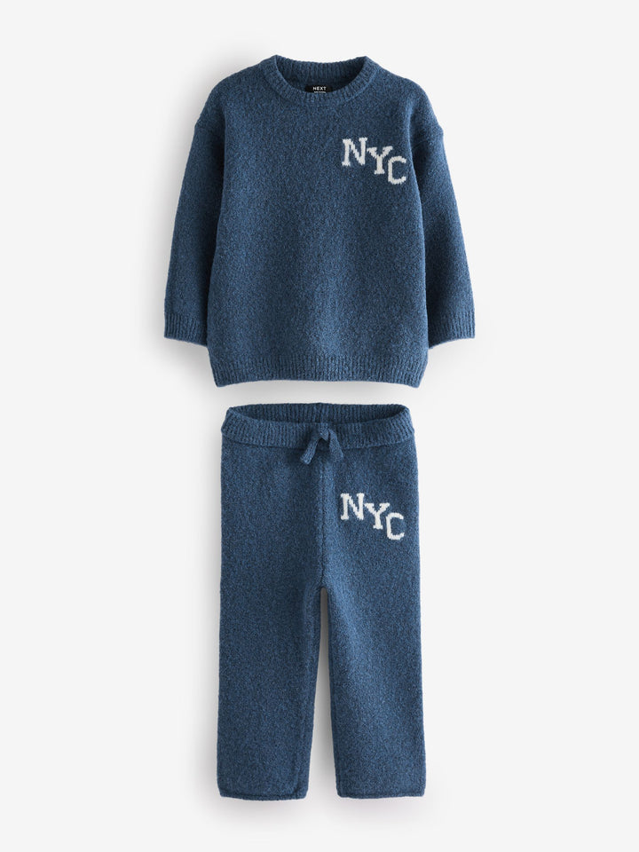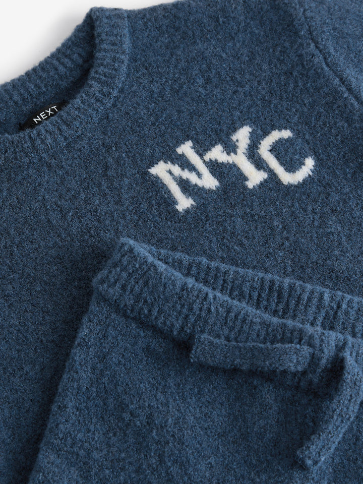 Navy Blue Knitted NYC Varsity Jumper and Joggers Set (3mths-7yrs)