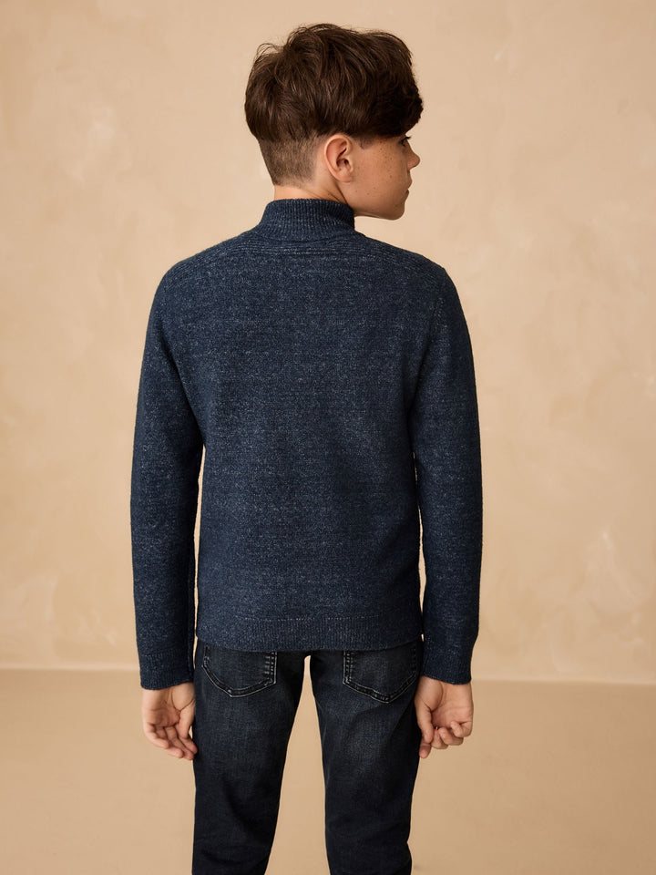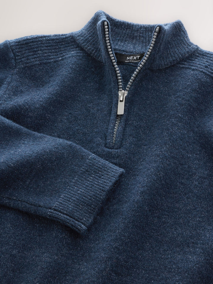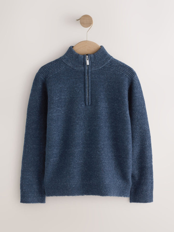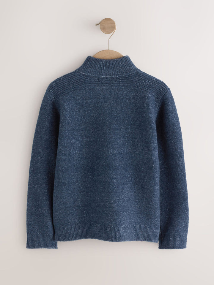 Navy Blue Knitted Zip Neck Jumper (3-16yrs)