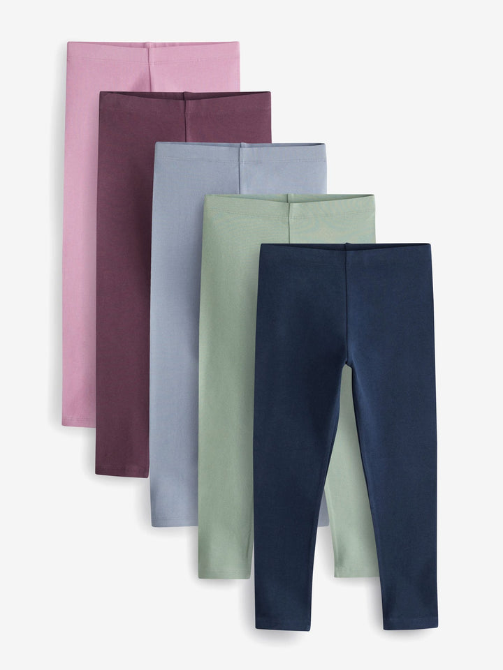 Navy Blue/ Pink/ Sage Green/ Denim Blue Leggings 5 Pack (3-16yrs)