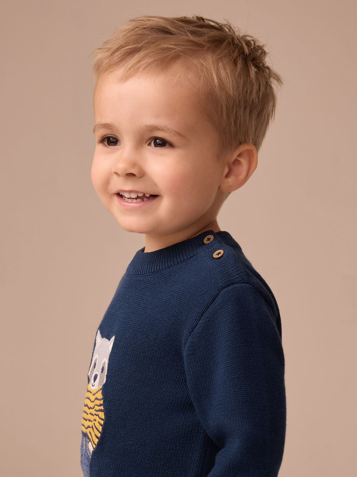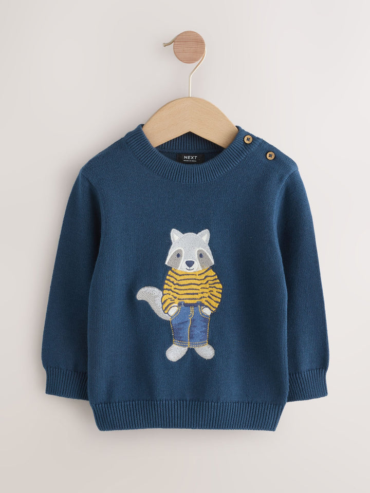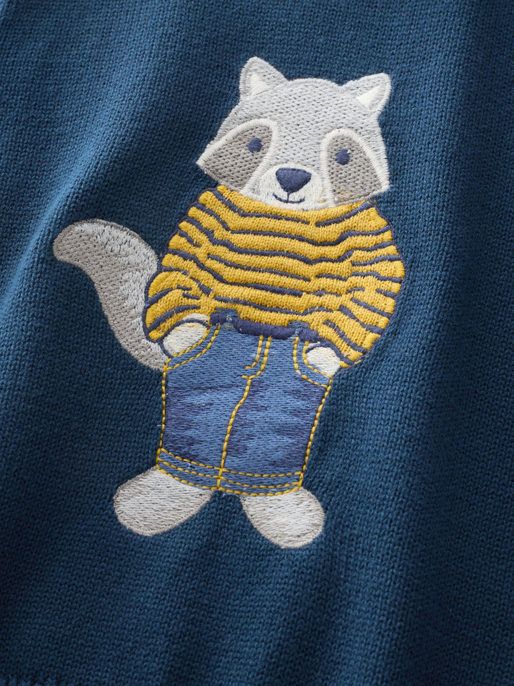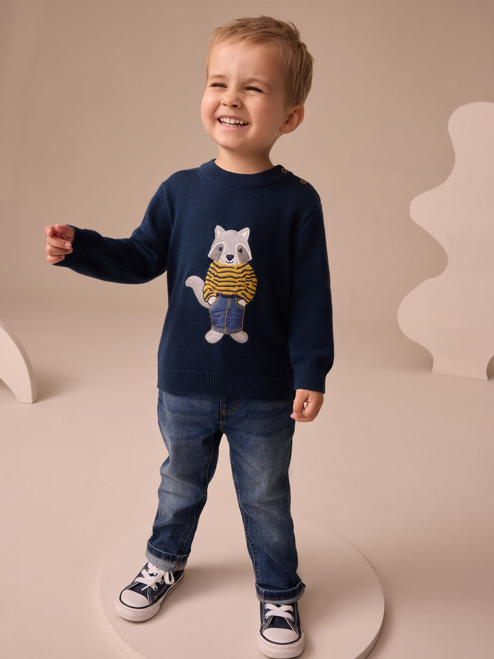Navy Blue Raccoon Knitted Jumper (3mths-7yrs)