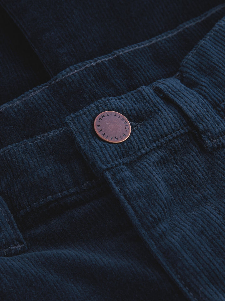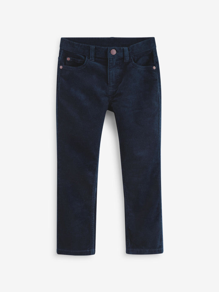 Made from a cotton-rich navy blue fabric with a stretchy feel and an adjustable wait, featuring a corduroy design with 5-pockets and a button and zip fly fastening. Regular fit Corduroy design Cotton-blend 5-pocket detail Button and zip fly Machine washable. 98% Cotton, 2% Elastane. Country of Origin: Bangladesh