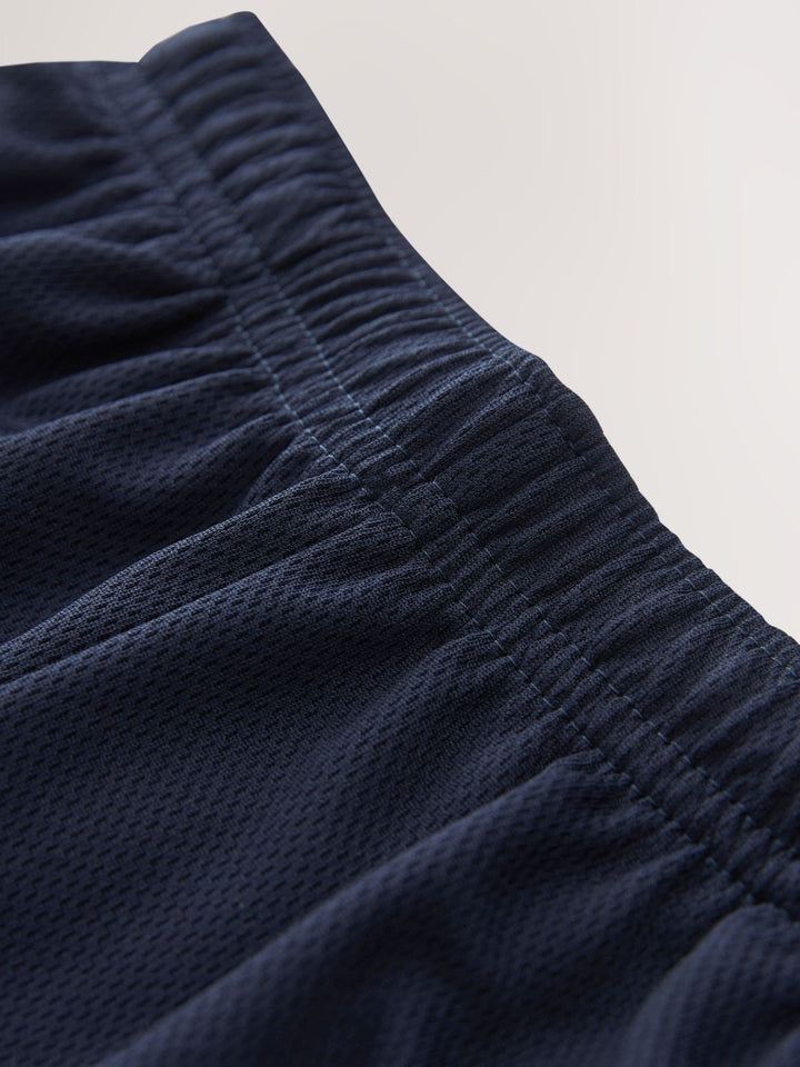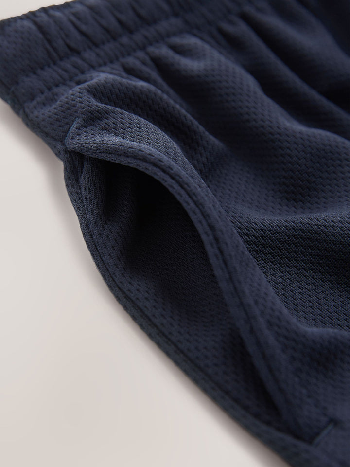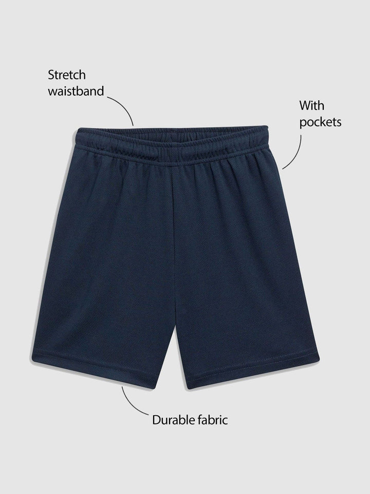 Elevate his activewear with our boy's football shorts in navy blue. Made from a lightweight and airy fabric, these shorts are cut in a mid thigh length and feature pockets and an elasticated waistband. Perfect for P.E, sports days or casual looks. Lightweight fabric Pull-on Elasticated waist Mid thigh length Machine washable. 100% Recycled polyester. Country of Origin: Bangladesh