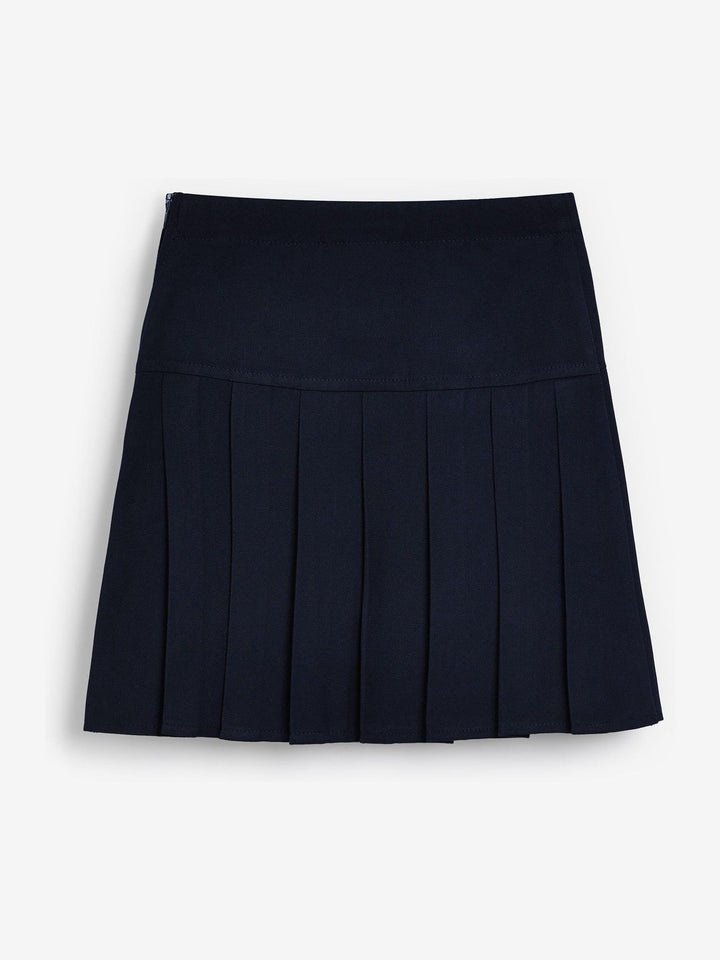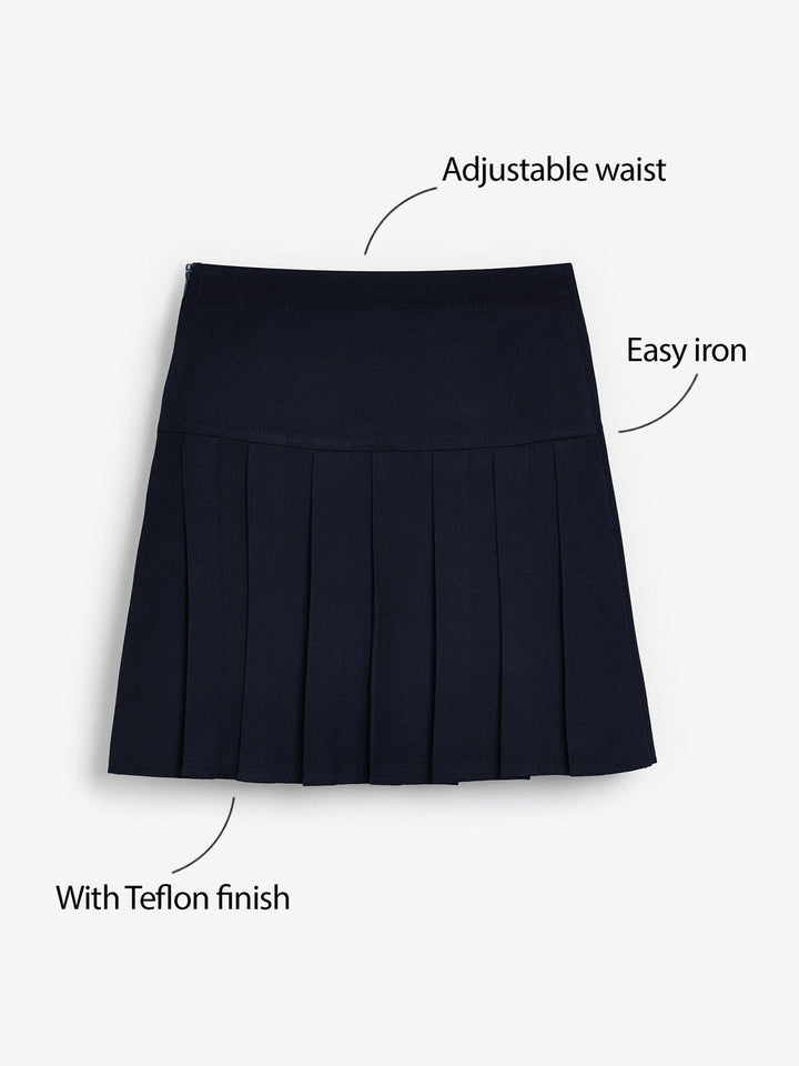Stock up on their school essentials just in time for the new term. In an easy-to-iron fabric with a Teflon finish, this 2 pack of navy blue school skirts are designed in a neat pleated style with a slim fit and an adjustable waistband for the perfect fit. Slim Fit: -2 inches slimmer through waist girth Key features: Easy Iron fabric - Handy easy-iron finish Teflon® Technology - Teflon EcoElite™ is a non-fluorinated plant-based finish that repels water and water-based stains for easy cleaning and quick drying. Visit www.teflon.com/ecoelite for more information Slim fit 2-pack Adjustable waist Machine washable. 2 x Skirt 65% Recycled polyester, 35% LENZING™ ECOVERO™ Viscose. Country of Origin: Sri Lanka This product is made with teflon. Teflon® is a registered trademark of DuPont.