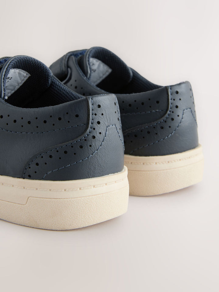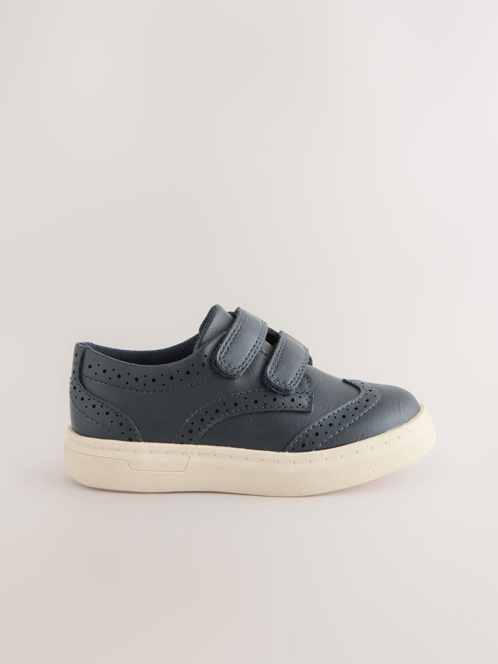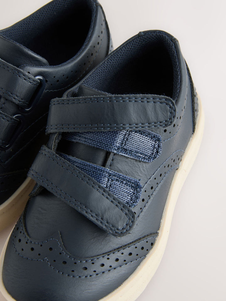 Navy Blue Standard Fit (F) Touch Fastening Brogue Shoes