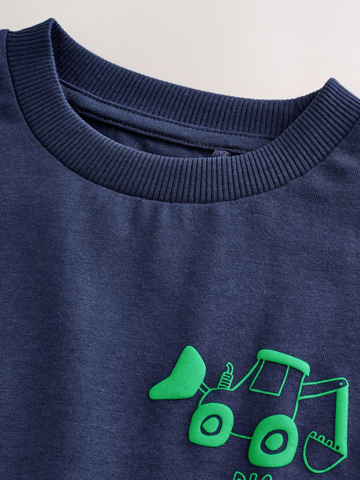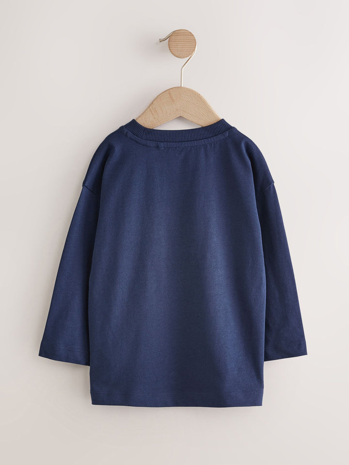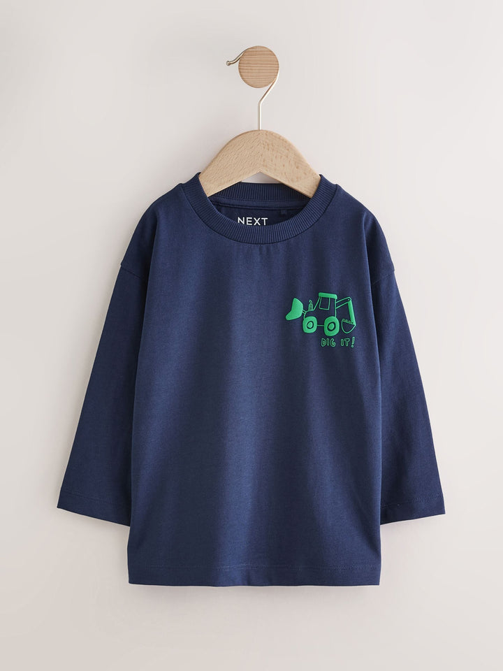 Navy Blue Tractor Long Sleeves Semi Plain T-Shirt (3mths-7yrs)