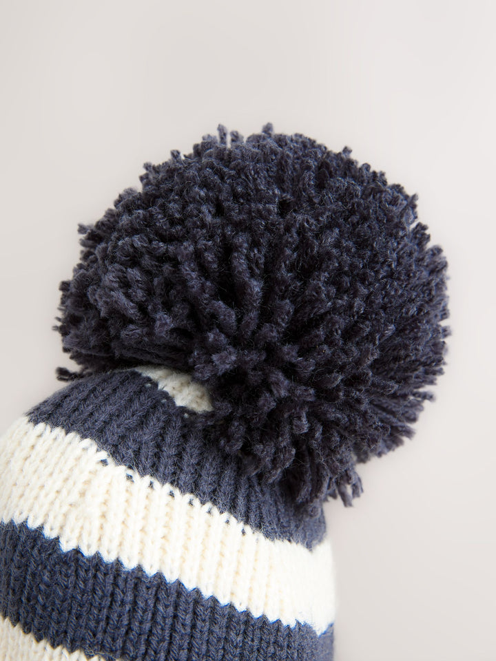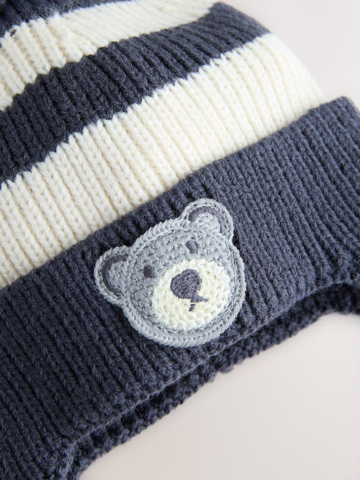 Navy Blue/White Bear Ear-Cover Pom Beanie Hat (3mths-10yrs)