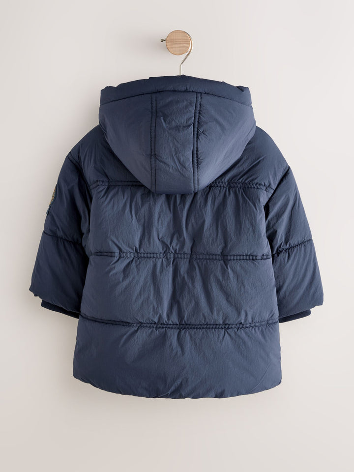 Navy Borg Lined Padded Shower Resistant Coat (3mths-7yrs)