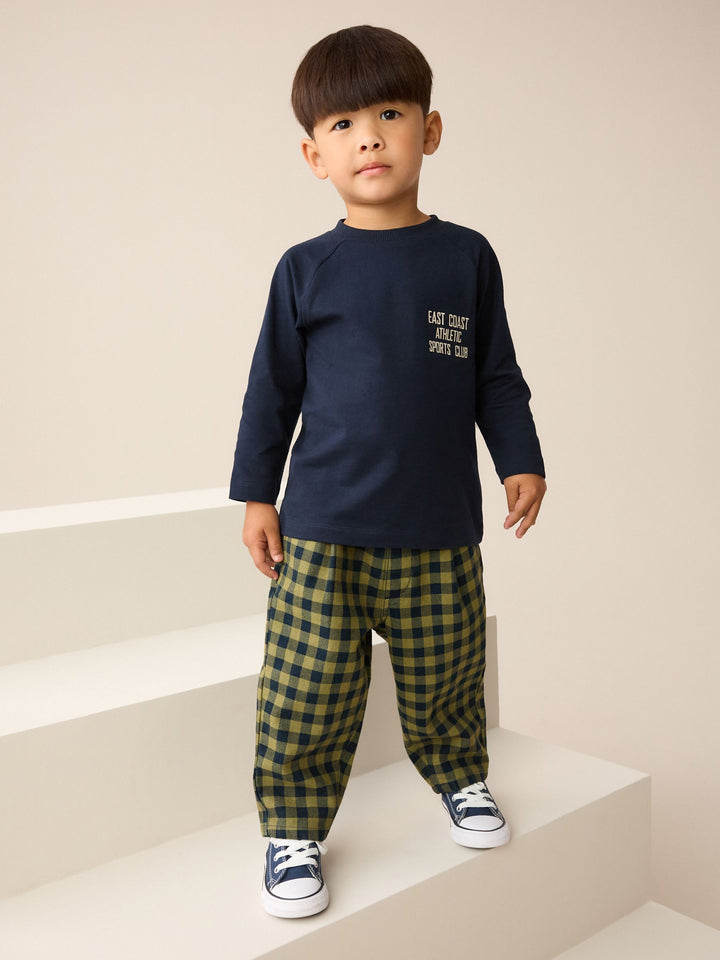 Navy Gingham Barrel Pull On Trousers (3mths-7yrs) (3mths-7yrs)
