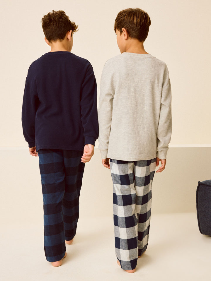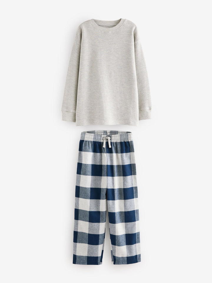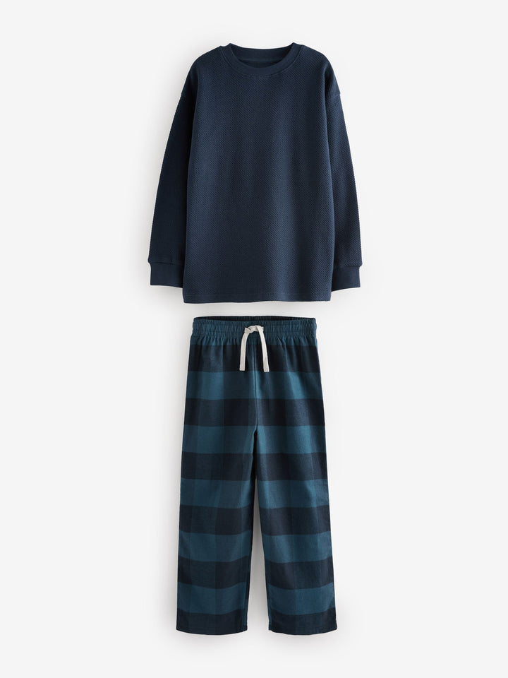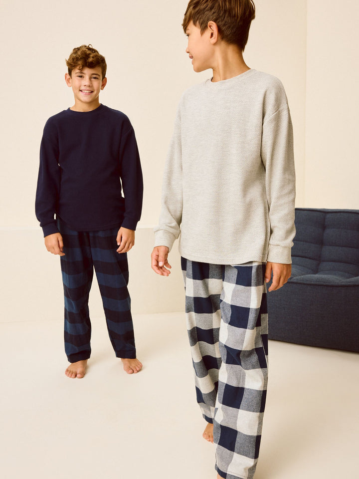 Navy/Grey Textured Top Long Sleeve Woven Check Pyjamas 2 Pack (3-16yrs)