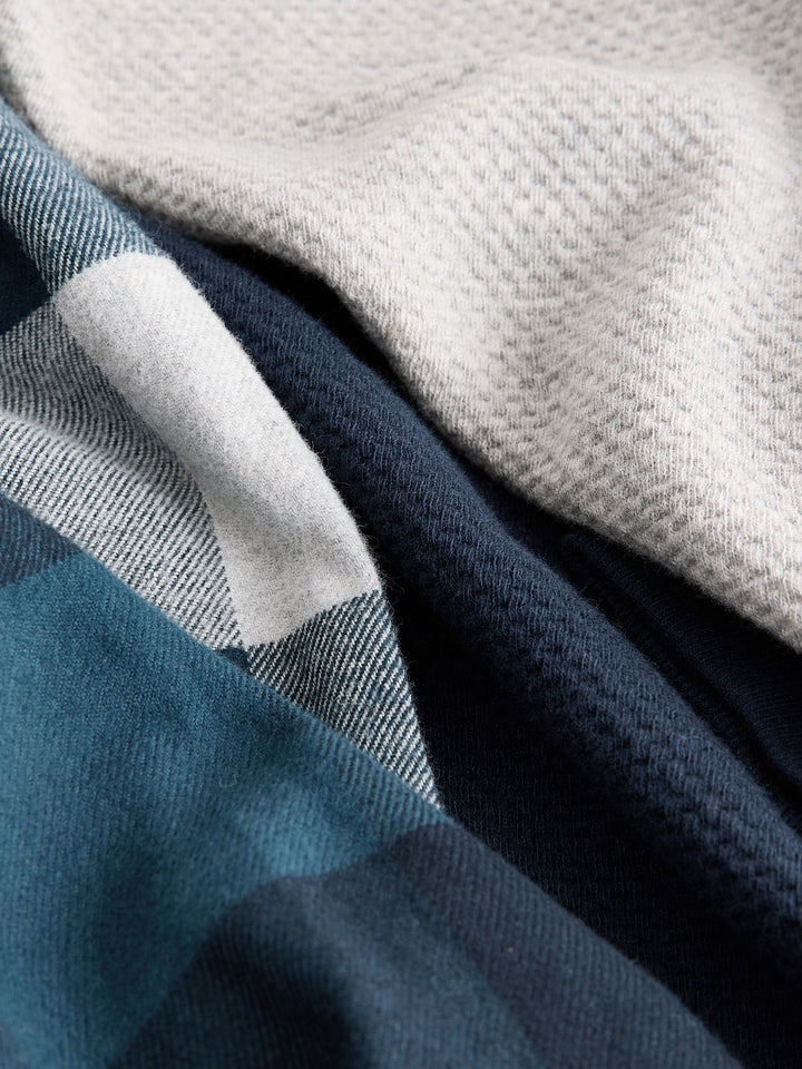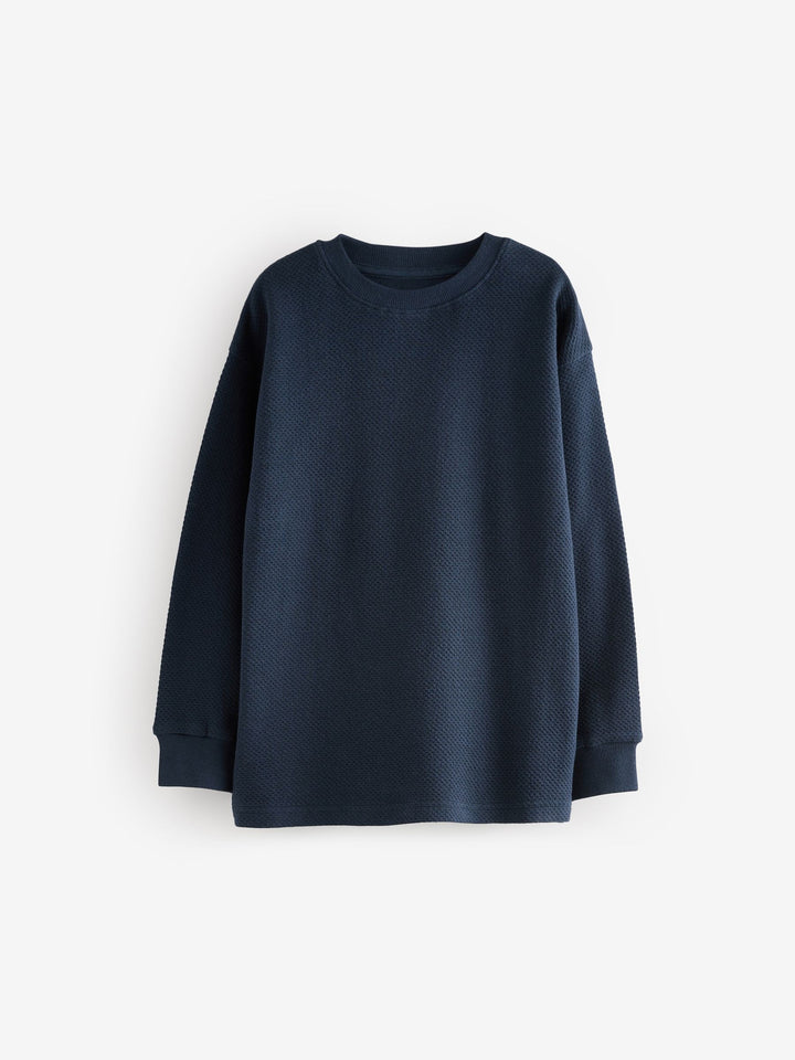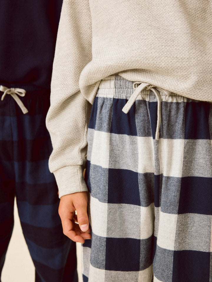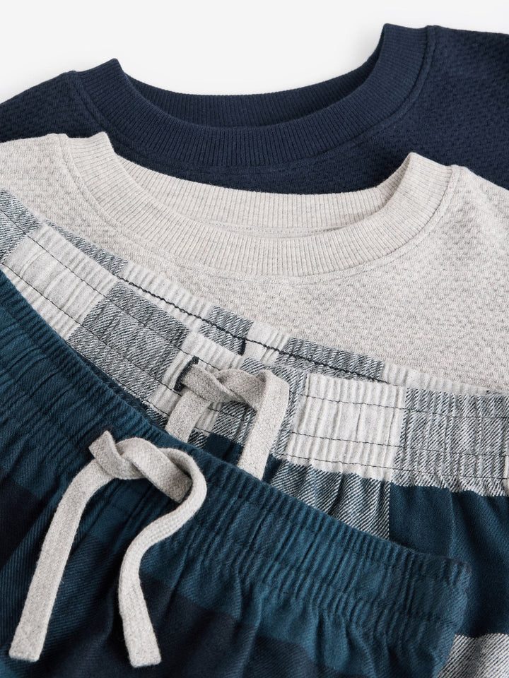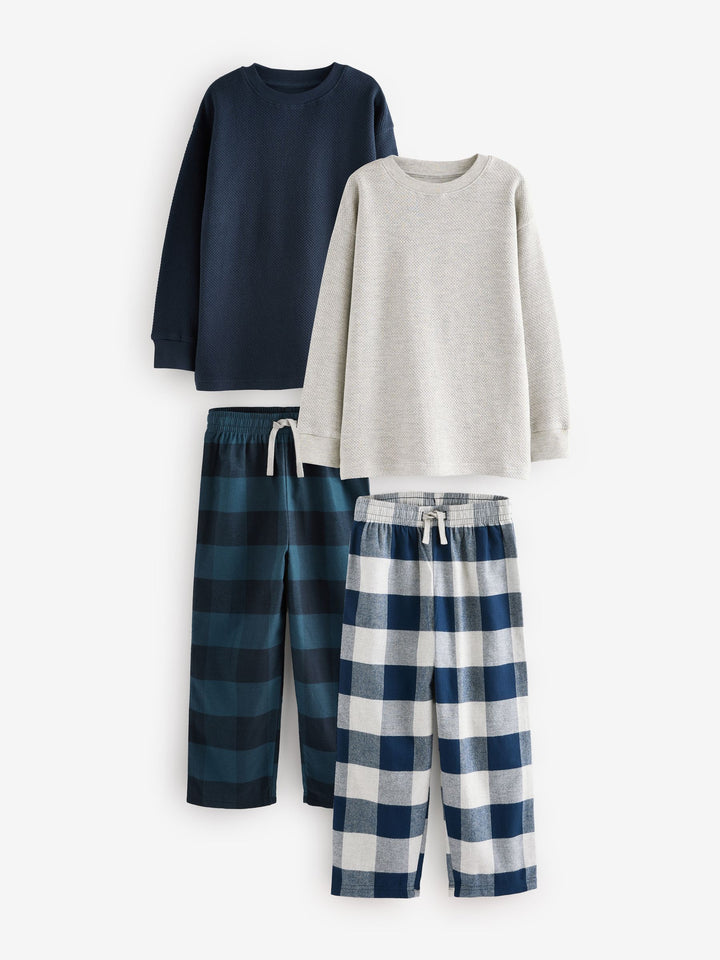 Navy/Grey Textured Top Long Sleeve Woven Check Pyjamas 2 Pack (3-16yrs)
