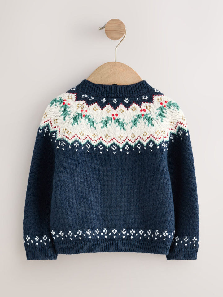 Navy Holly Jolly Christmas Cardigan (3mths-10yrs)